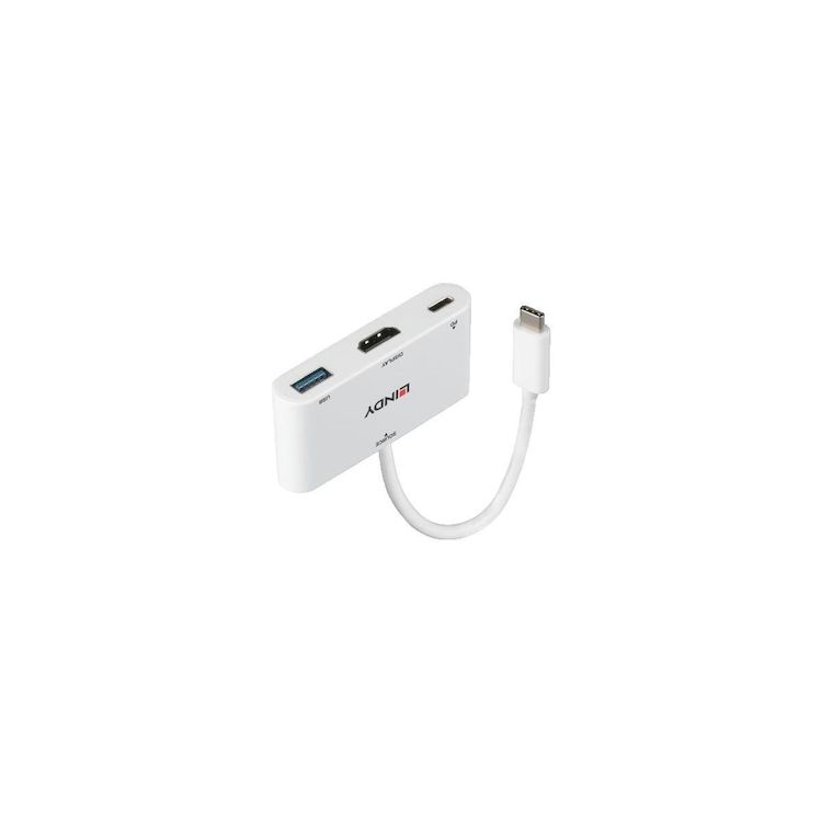 Découvrez l'adaptateur USB 3.1 Type C vers HDMI modèle 43340 de la marque Lindy. Ce dispositif compact en plastique blanc permet de connecter facilement votre ordinateur équipé d'un port USB Type C ou Thunderbolt 3 à un écran HDMI. Il prend en charge une résolution maximale de 3840x2160 pixels à 30Hz pour une qualité d'image optimale. Ce modèle inclut aussi un port d'alimentation USB Type C compatible Power Delivery jusqu'à 100W pour recharger vos appareils pendant l'utilisation. Son installation est simple, aucune installation de pilote n'est nécessaire. Parfait pour une connectivité améliorée au bureau ou à la maison.