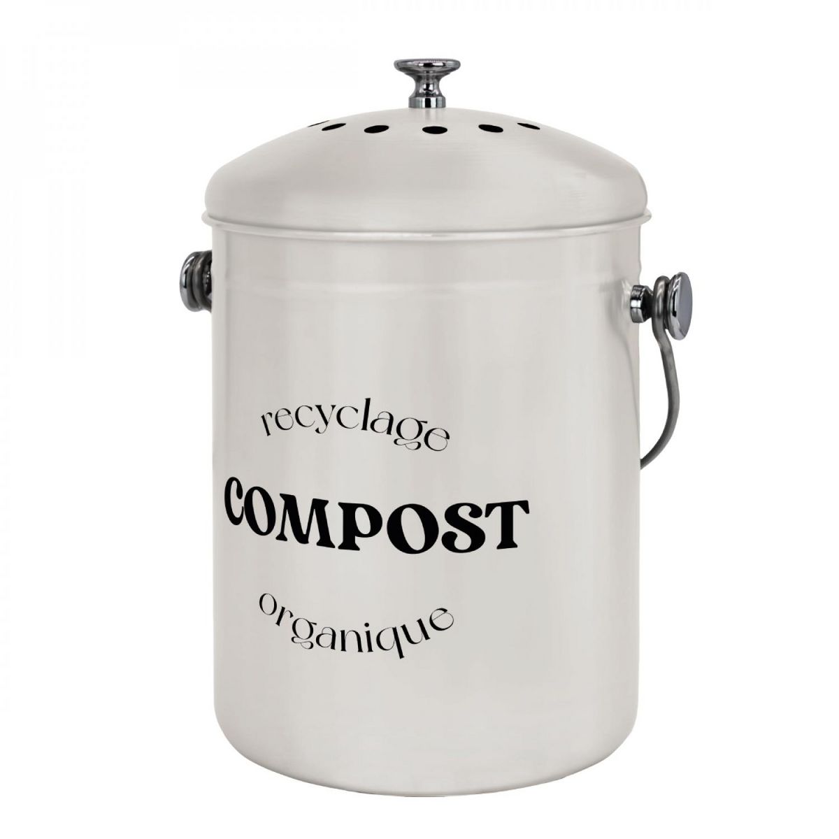 Composteur, bac, poubelle à compost de cuisine 5L rond en Inox - Beige