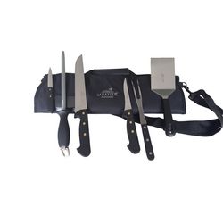 Composé de six éléments indispensables au barbecue, ce service d'une qualité exceptionnelle est logé dans une trousse bandoulière souple transportable partout.