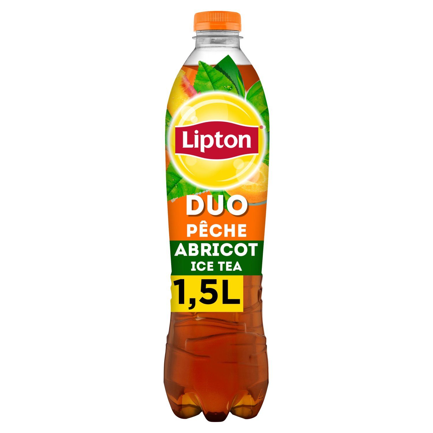 Boisson rafraîchissante aux extraits de thé goût pêche abricot, avec sucre et édulcorant.