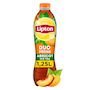 Boisson rafraîchissante aux extraits de thé goût pêche et abricot, avec sucres et édulcorant.