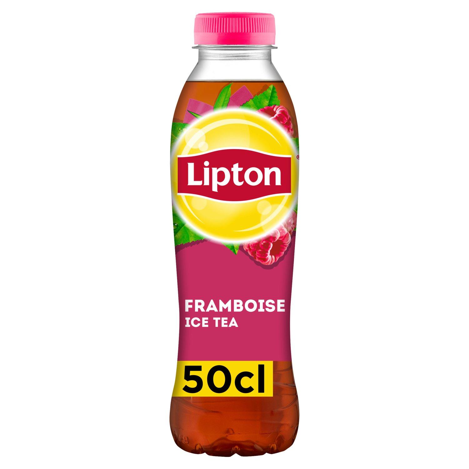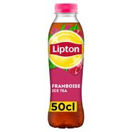 Boisson rafraîchissante aux extraits de thé goût framboise, avec sucres et édulcorant.