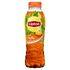 Boisson rafraîchissante aux extraits de thé goût pêche, avec sucres et édulcorant.