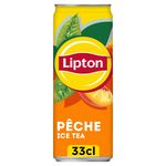 Boisson rafraîchissante aux extraits de thé goût pêche, avec sucres et édulcorant.