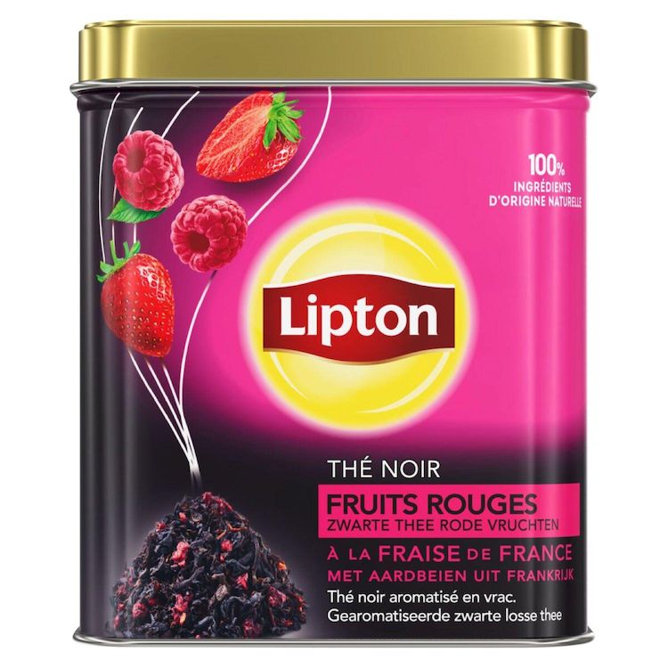 Découvrez notre vrac de 150G de Thé Noir Fruits Rouges Lipton, un thé délicatement aromatisé pour un moment de plaisir raffiné et irrésistible. Avec ce the Fruits Rouges, retrouvez une recette au goût fruité, qui allie l'intensité du the noir lipton à la gourmandise et la rondeur des fruits rouges. Les ingrédients 100% d'origine naturelle de ce the noir ont été sélectionnés avec soin pour apporter un goût authentique et un parfum qui fait de chaque gorgée un plaisir. Les feuilles de thé présentes dans cette boîte ont été cueillies dans les plantations certifiées Rainforest Alliance et sélectionnées avec attention pour vous offrir du the lipton de grande qualité. Elles ont ensuite été soigneusement emballées dans des sachets d'origine végétale. Pour une dégustation optimale, laissez infuser le the noir Lipton 2 à 3 minutes dans 200 ml d'eau à 100°C. Lipton® est engagé dans la filière du développement durable avec sa certification Rainforest Alliance.