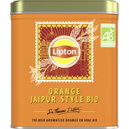 Fidèle à la tradition indienne, le thé noir Lipton® Orange Jaipur Bio associe un thé noir biologique d'exception à des écorces d'orange et des notes fruitées et intenses. Les feuilles de ce thé ont été cueillies dans des plantations certifiées Agriculture Biologique, garantissant l'absence de pesticides. Elles ont été sélectionnées avec attention puis roulées et séchées pour vous offrir un thé de grande qualité. Comme tous les thés Lipton®, le thé noir bio Lipton® Orange Jaipur est 100 % responsable car vérifié Rainforest Alliance. Depuis sa création par Sir Thomas Lipton, la marque Lipton® s’engage pour l’environnement et le développement durable. Lipton® a été la première marque de thé à avoir sa propre plantation certifiée Rainforest Alliance – une ONG indépendante et experte en agriculture durable. En effet, la plantation Lipton® de Kericho, au Kenya, est certifiée Rainforest Alliance depuis 2007. Aujourd’hui, 100 % des thés Lipton® sont certifiés Rainforest Alliance. L’objectif de Lipton® : vous offrir des thés de qualité, tout en respectant l’environnement et en limitant notre empreinte écologique. Plus de cent ans de réussites et d'innovations, comme l’invention du sachet double chambre puis du sachet Pyramid®, ont permis à Lipton® d'apporter davantage de plaisir autour du thé à plus de personnes dans le monde. Depuis des milliers d’années, et ce partout dans le monde, boire du thé est synonyme d’amitié, d’hospitalité et de moments partagés. Cela peut également être l’occasion de faire une pause, de prendre du temps pour soi et de se ressourcer. Alors, où que vous soyez et quelle que soit la situation, chez Lipton®, nous pensons que la solution est toujours une bonne tasse de thé. Certifié Agriculture Biologique. Thé noir aromatisé orange en vrac bio