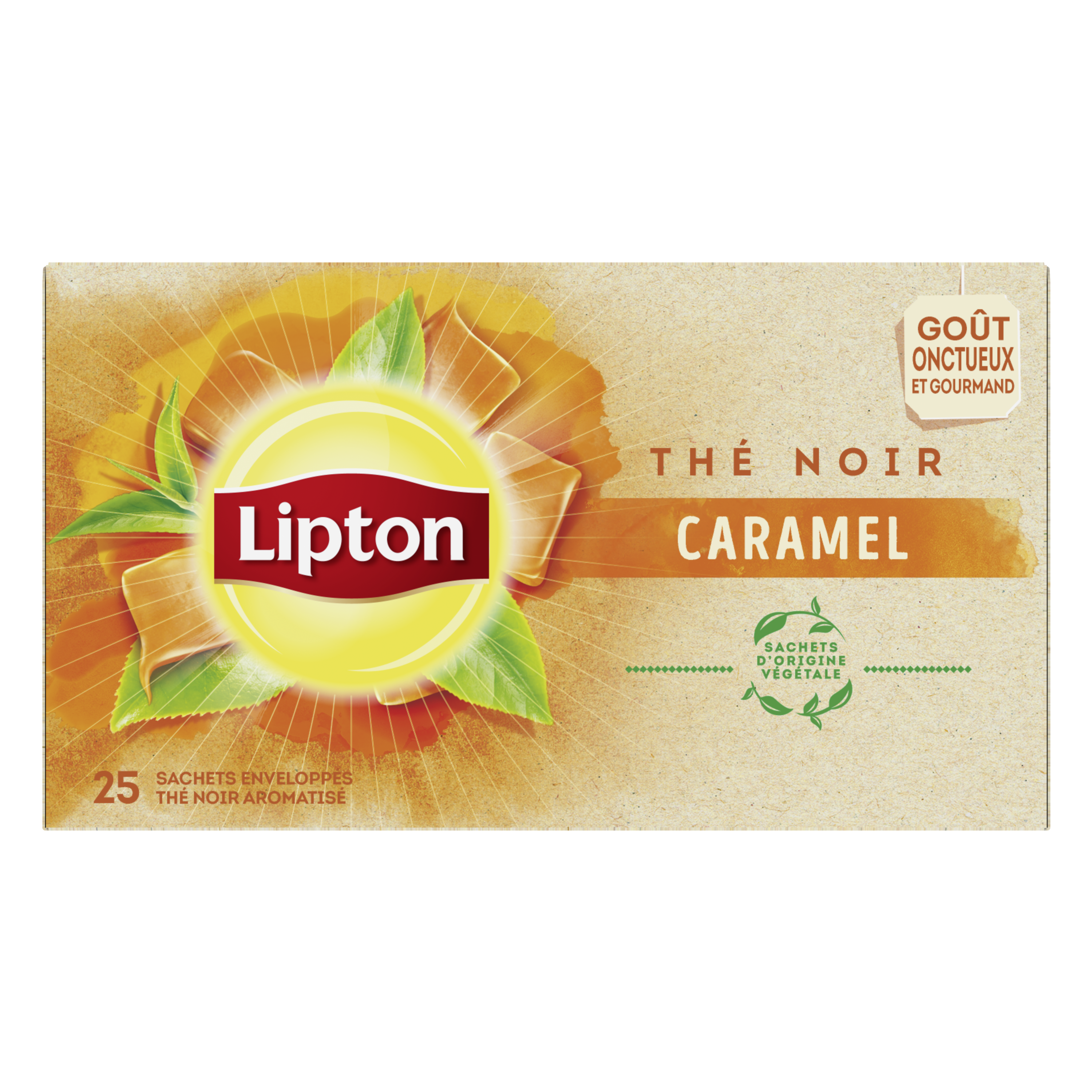 Les 20 sachets de Thé Noir Caramel Lipton® vous accompagnent pour une pause rafraîchissant et délicatement fruitée.