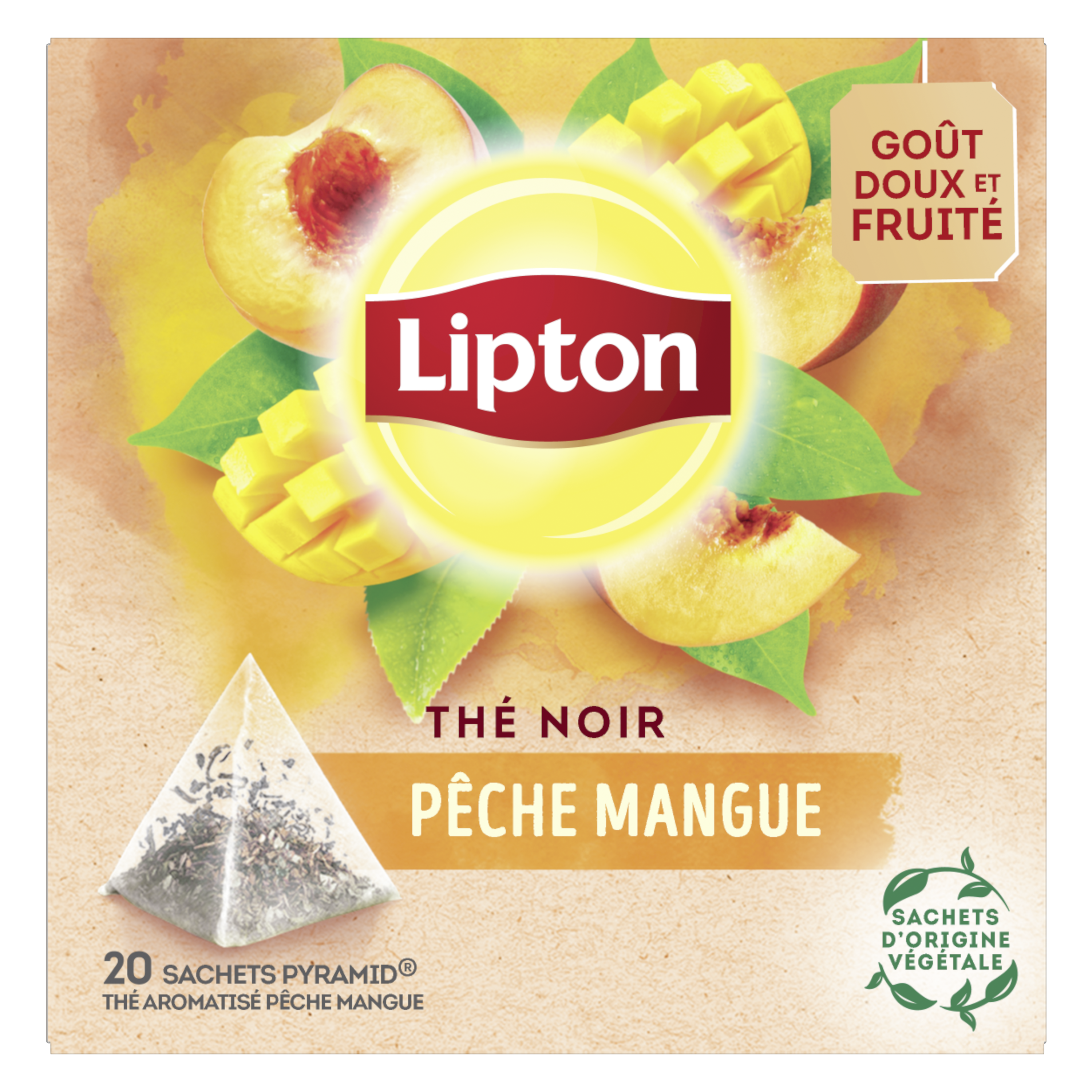Les 20 sachets Pyramid® de Thé Noir Agrumes Lipton® vous accompagnent pour une expérience fruitée, intense et savoureuse.