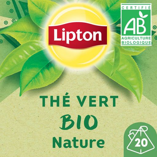Les 20 sachets de Thé Vert Bio Nature Lipton® vous accompagnent pour une pause rafraîchissant et naturelle.