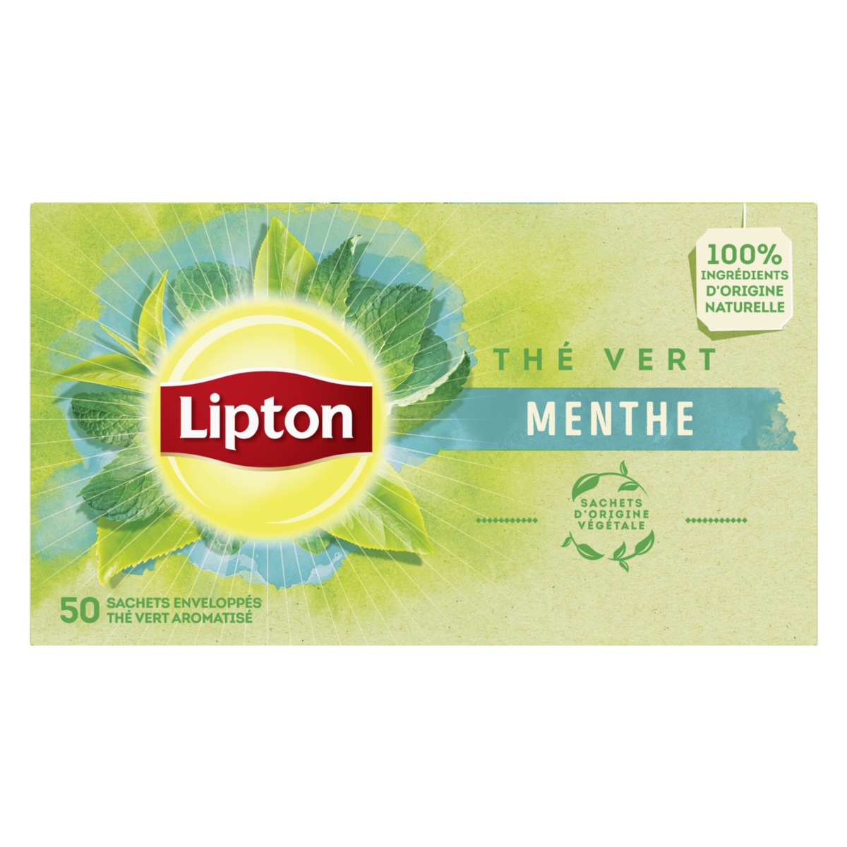 Thé vert Aromatisé menthe. 50 sachets enveloppés