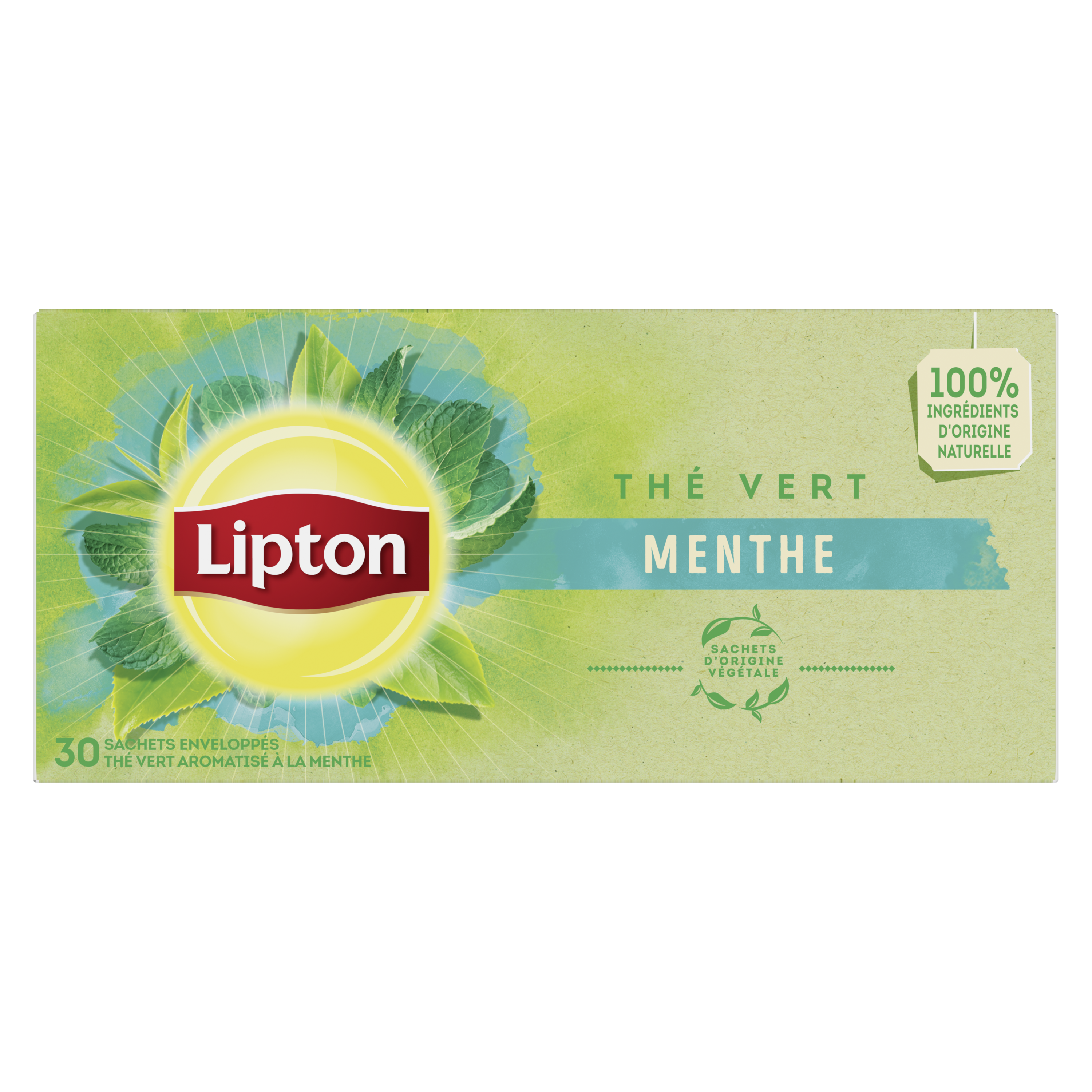 Les 30 sachets de Thé Vert Menthe Lipton® vous accompagnent pour une pause rafraîchissant et délicatement parfumée.