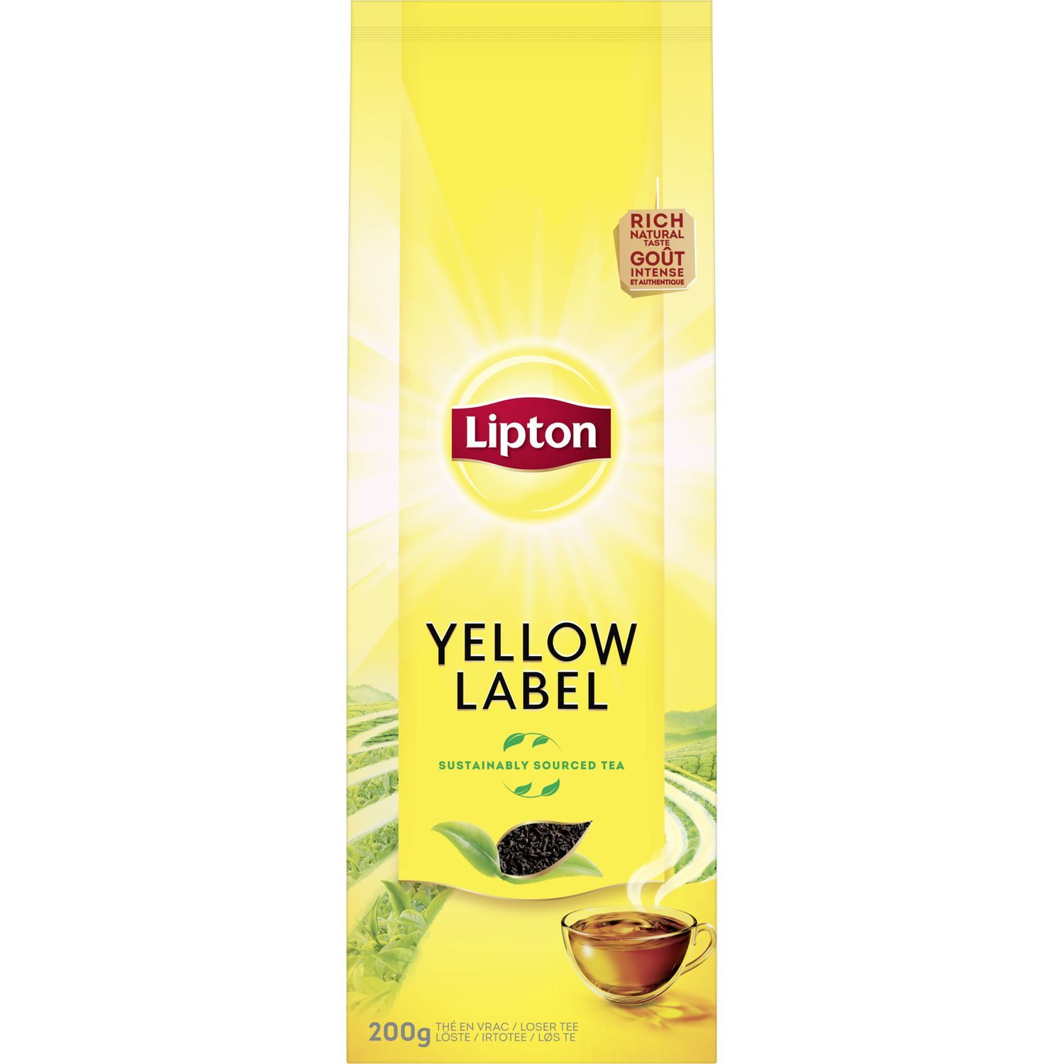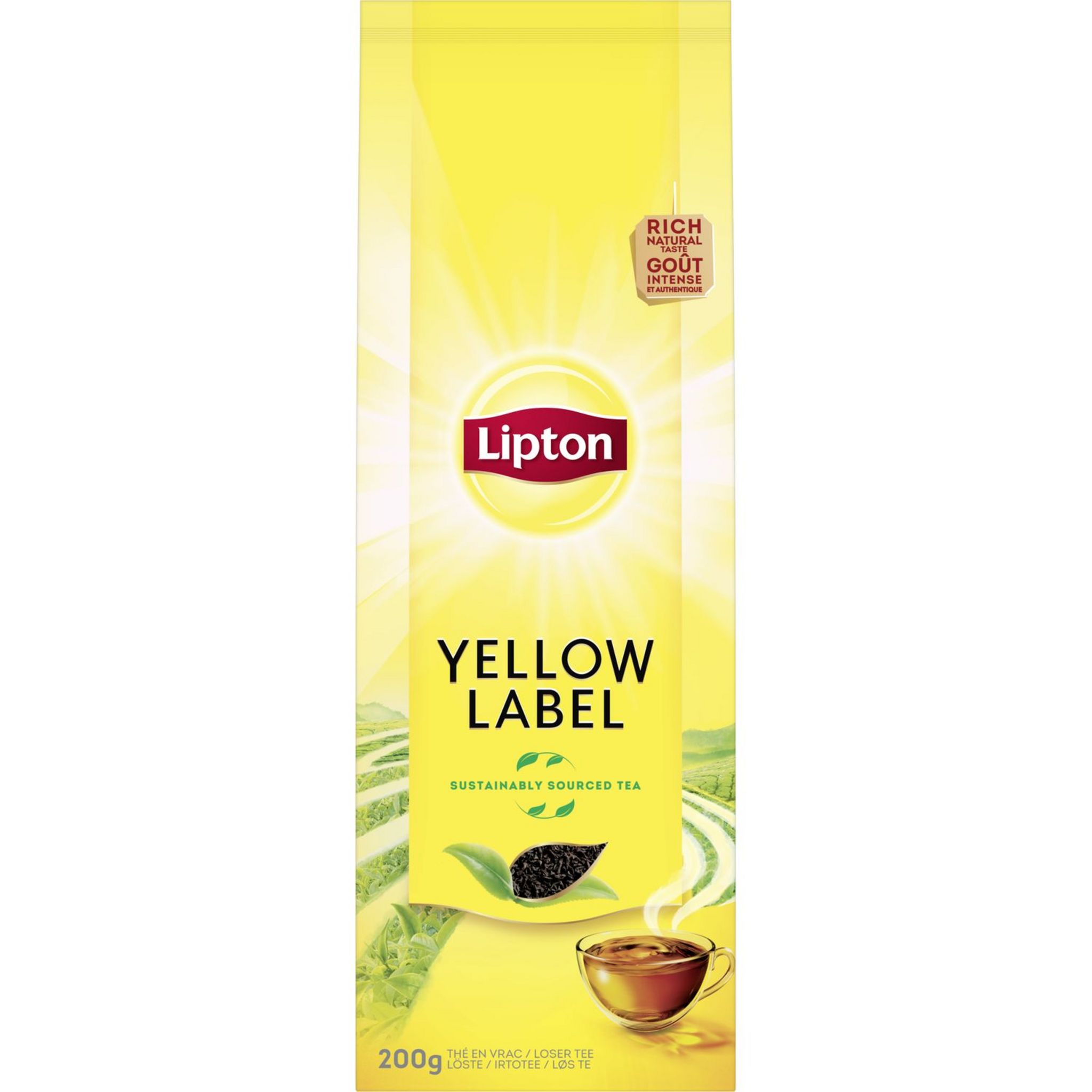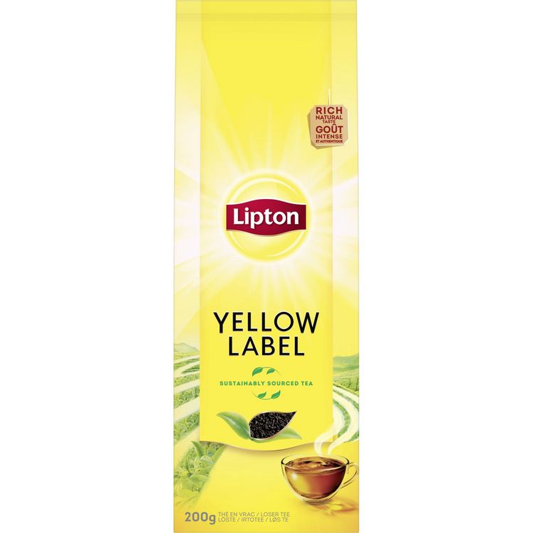 Illuminez votre journée avec ce thé noir Lipton® Yellow Label au goût intense et authentique (200 g de thé vrac). Les feuilles de thé de grande qualité que nous sélectionnons pour Lipton® Yellow Label lui donnent son parfum délicieux qui fait que chaque gorgée est un rayon de soleil. Un thé en vrac à la saveur noire et corsée pour commencer votre journée de la meilleure façon possible ! Versez 200 ml d'eau à 100 °C et laissez infuser pendant 2-3 minutes. La totalité du thé Lipton® provient de plantations certifiées Rainforest Alliance pour un thé plus respectueux des cultivateurs et de l’environnement. Lipton® s'est engagé à soutenir les petits exploitants agricoles à travers sa politique durable. Notre histoire : quand Sir Thomas Lipton fonda sa société à la fin du 19ème siècle, il acheta sa première plantation de thé à Ceylan (Sri Lanka). Plus de cent ans après, Lipton® possède des milliers d'hectares de théiers de qualité en Afrique orientale. Bâti sur une expérience de plus d'un siècle en matière de culture et de mélange de thé, Lipton® a conservé l'amour de Sir Thomas pour l'innovation et l'excellence. Lipton® s’appuie sur des valeurs solides inspirées par son fondateur Sir Thomas Lipton : naturalité, optimisme et dynamisme. Marque moderne et éloignée des codes traditionnels du « tea-time », Lipton® a fondé son succès sur le développement d’une « expérience de dégustation » au cours de laquelle la consommation pourra faire naître des moments de plaisirs partagés, de découvertes et de convivialité. Plus de cent ans de réussites et d’innovations ont permis à Lipton® d’apporter davantage de plaisir autour du thé à toujours plus de personnes dans le monde. Dans cet esprit d’inventivité, de recherche et de découverte, Lipton® contribue à faire découvrir les bienfaits du thé infusé, noir ou vert. En tout, Lipton® comptabilise près de 80 références de thés et d'infusions en France. Thé Noir