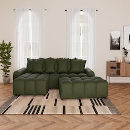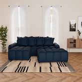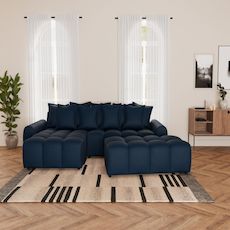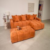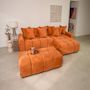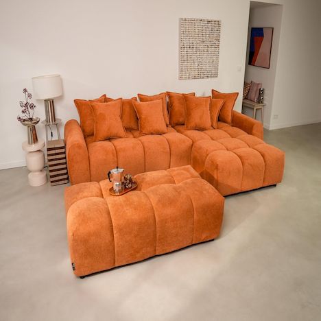 Adelaide transforme votre salon en véritable cocon. Grâce à son angle réversible, vous pouvez adapter la méridienne selon la configuration de votre pièce. Mieux encore, son pouf d'appoint peut être accolé, sans système de fixation, pour former un couchage d'appoint accueillant, idéal pour recevoir ou s'accorder une sieste improvisée. Son assise bombée, aussi moelleuse qu'un nuage, et sa jetée de coussins généreuse invitent à la détente, en solo ou à plusieurs.