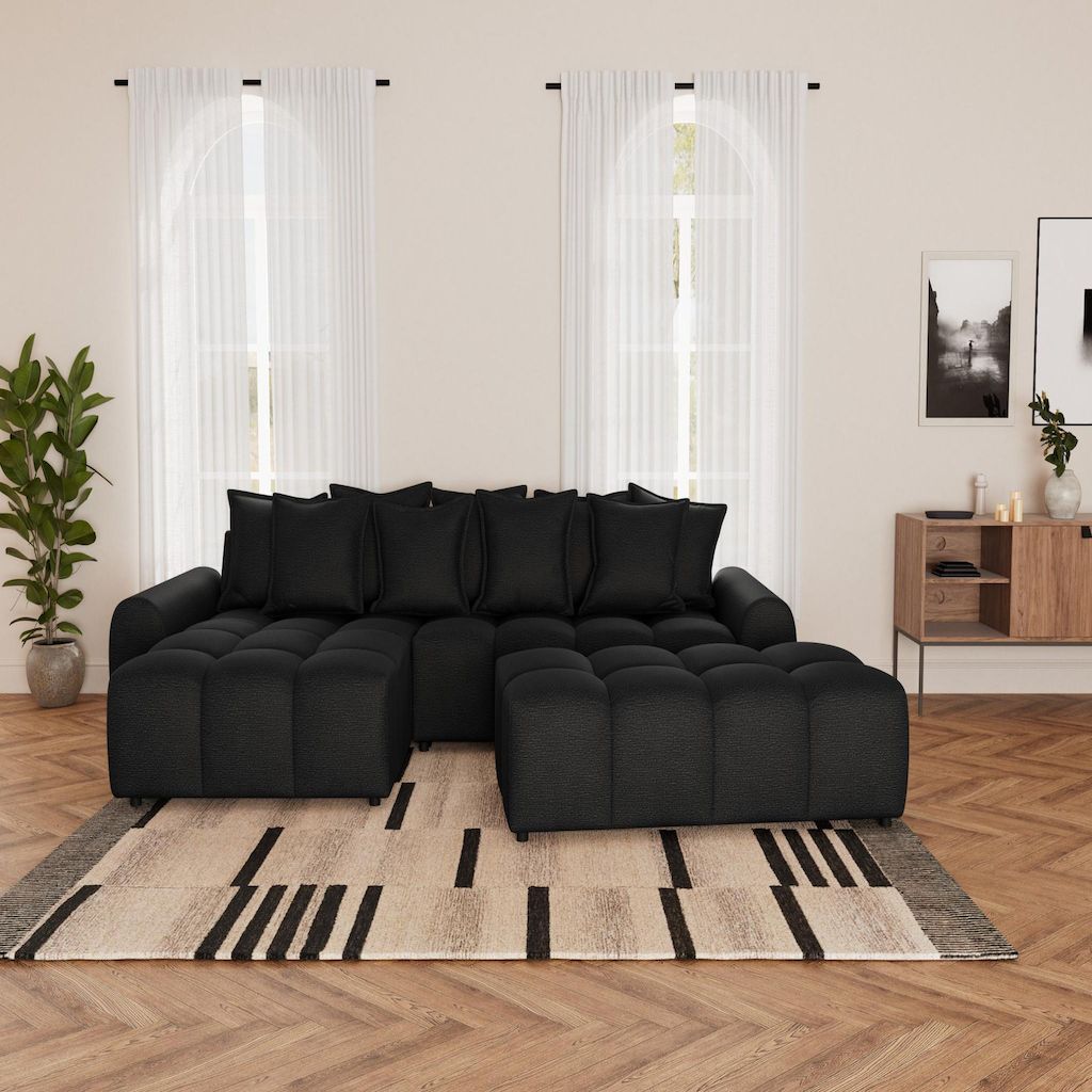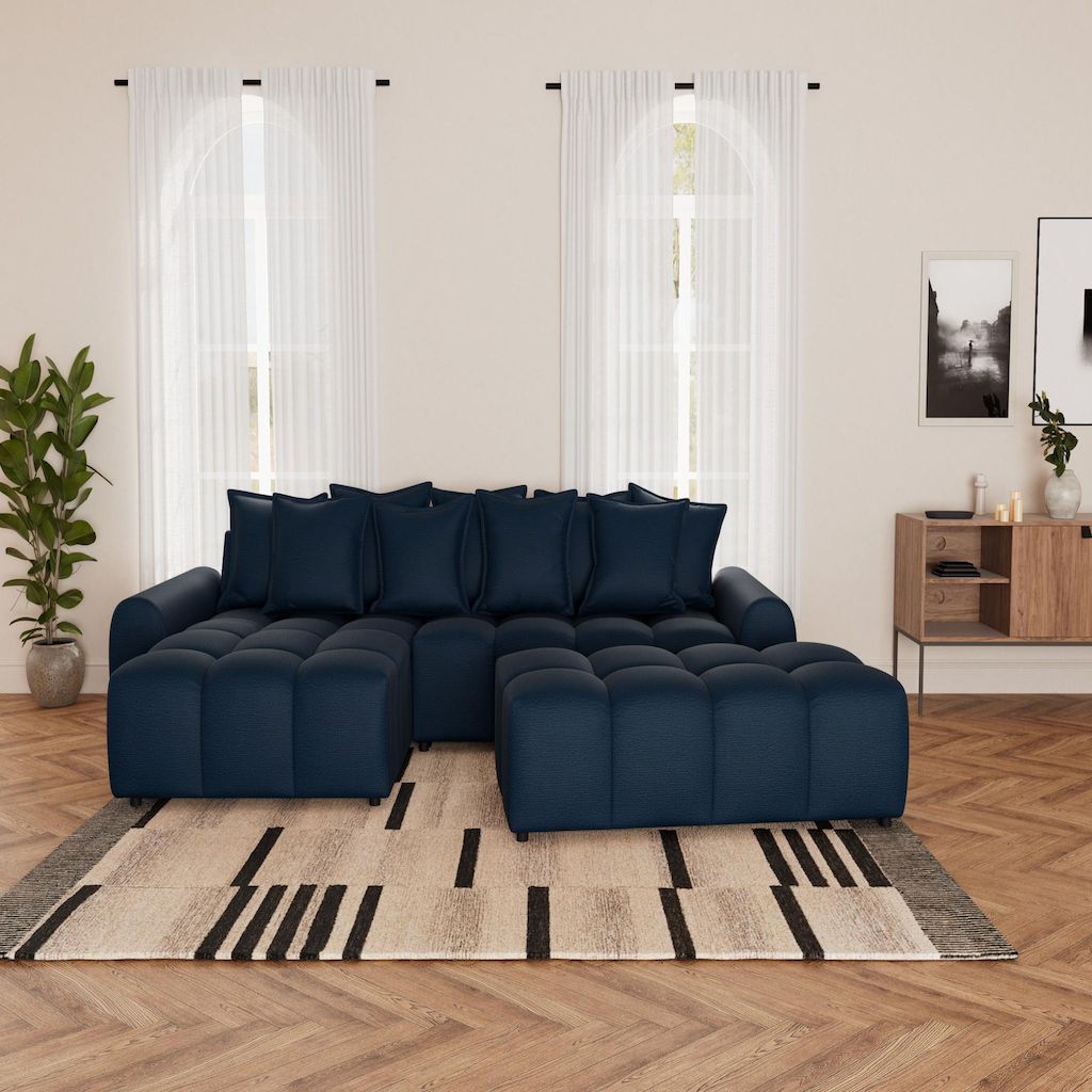 Adelaide - canapé d'angle réversible 4 places avec pouf d'appoint en tissu texturé