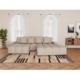 Le pouf Adelaide s'adapte à vos envies avec style et simplicité. Il peut faire office de siège d'appoint, de repose-pieds ou encore s'associer au canapé de la même collection pour créer un espace de détente sur mesure. Mieux encore, accolé au canapé Adelaide, il permet de former un couchage d'appoint pratique et confortable. Grâce à son assise bombée et moelleuse, il offre un confort digne d'un petit nuage, idéal pour allonger les jambes ou accueillir un invité de passage.