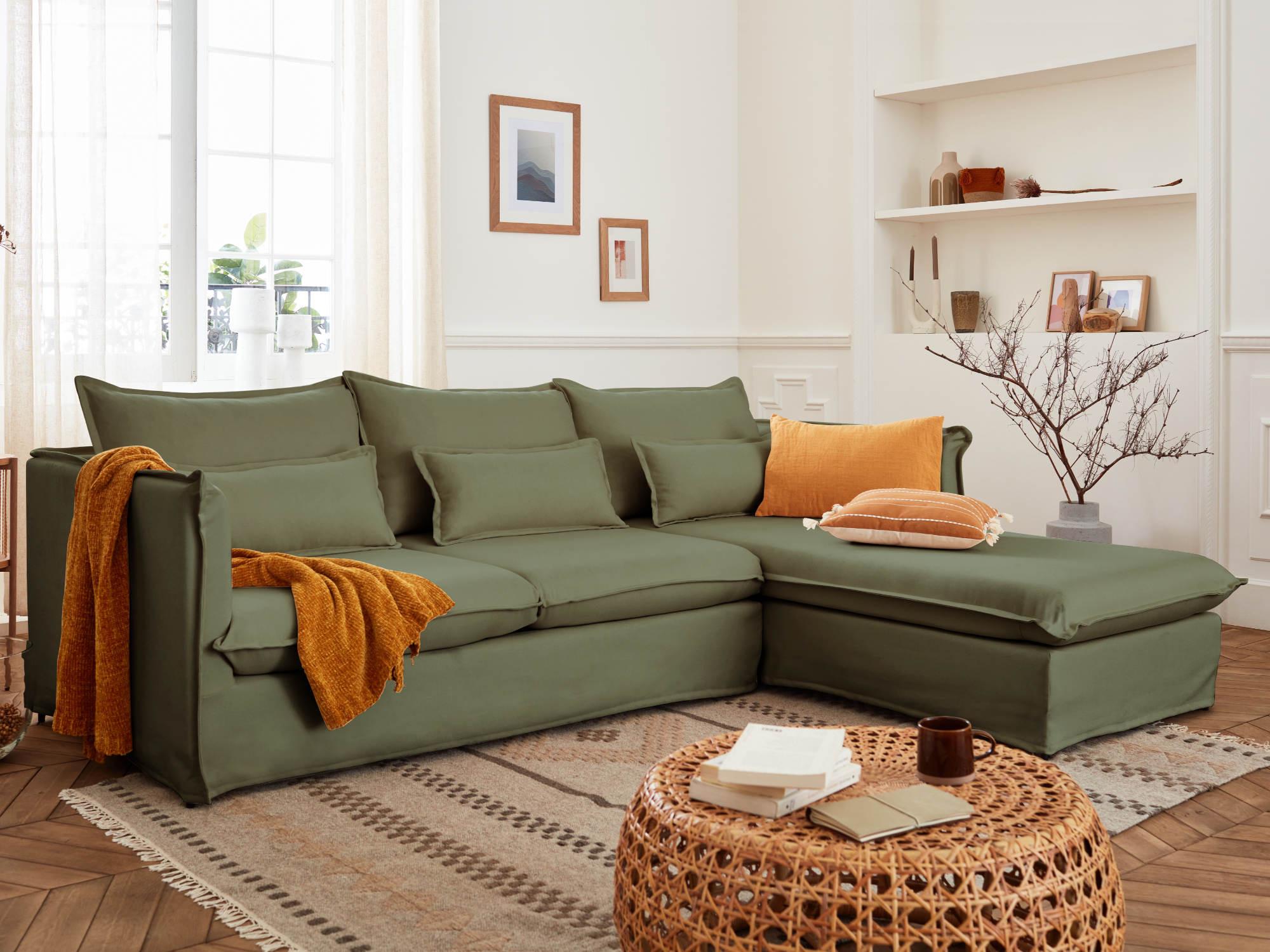 Adriann - canapé d'angle droit fixe - 4 places - en tissu déhoussable
