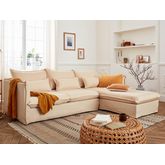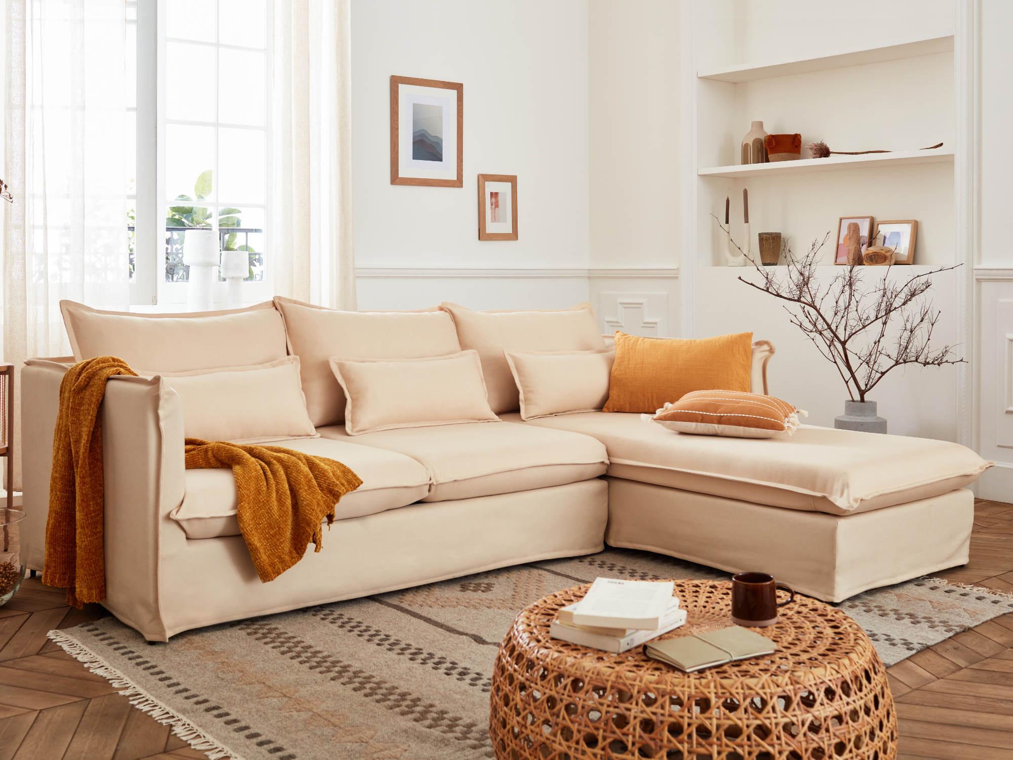 Et les atouts du canapé fixe Adriann ne s'arrêtent pas là. En effet, ce canapé d'angle 4 places aux lignes intemporelles est l'indispensable des salons cosy ! Grâce à ses 3 coussins de dossier et ses 3 cales-rein, ce canapé est un véritable cocon de douceur.