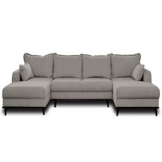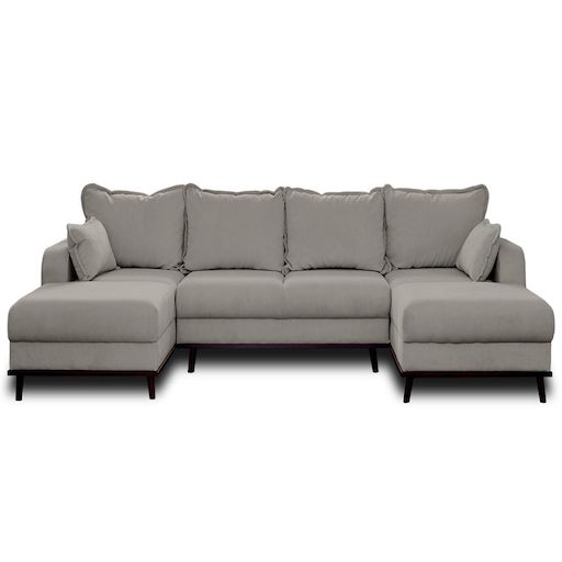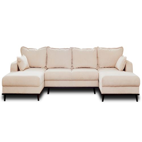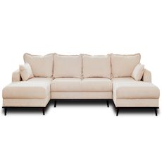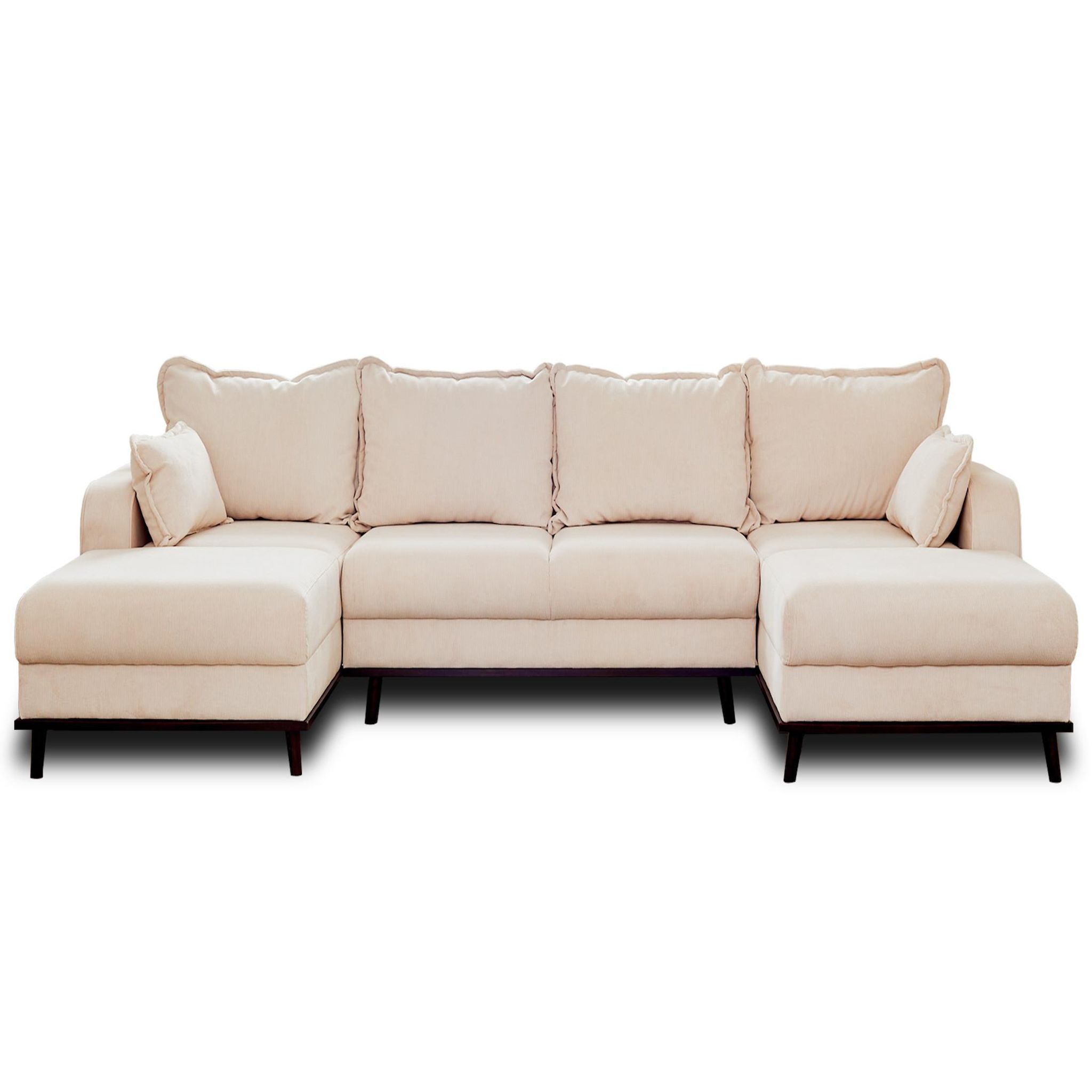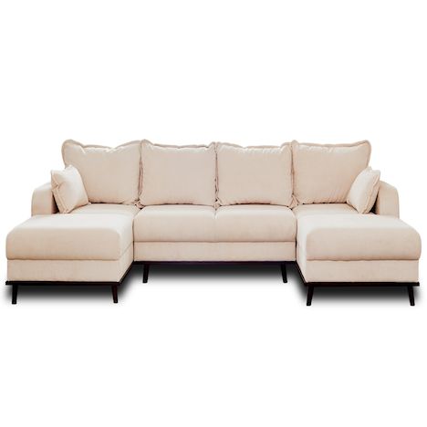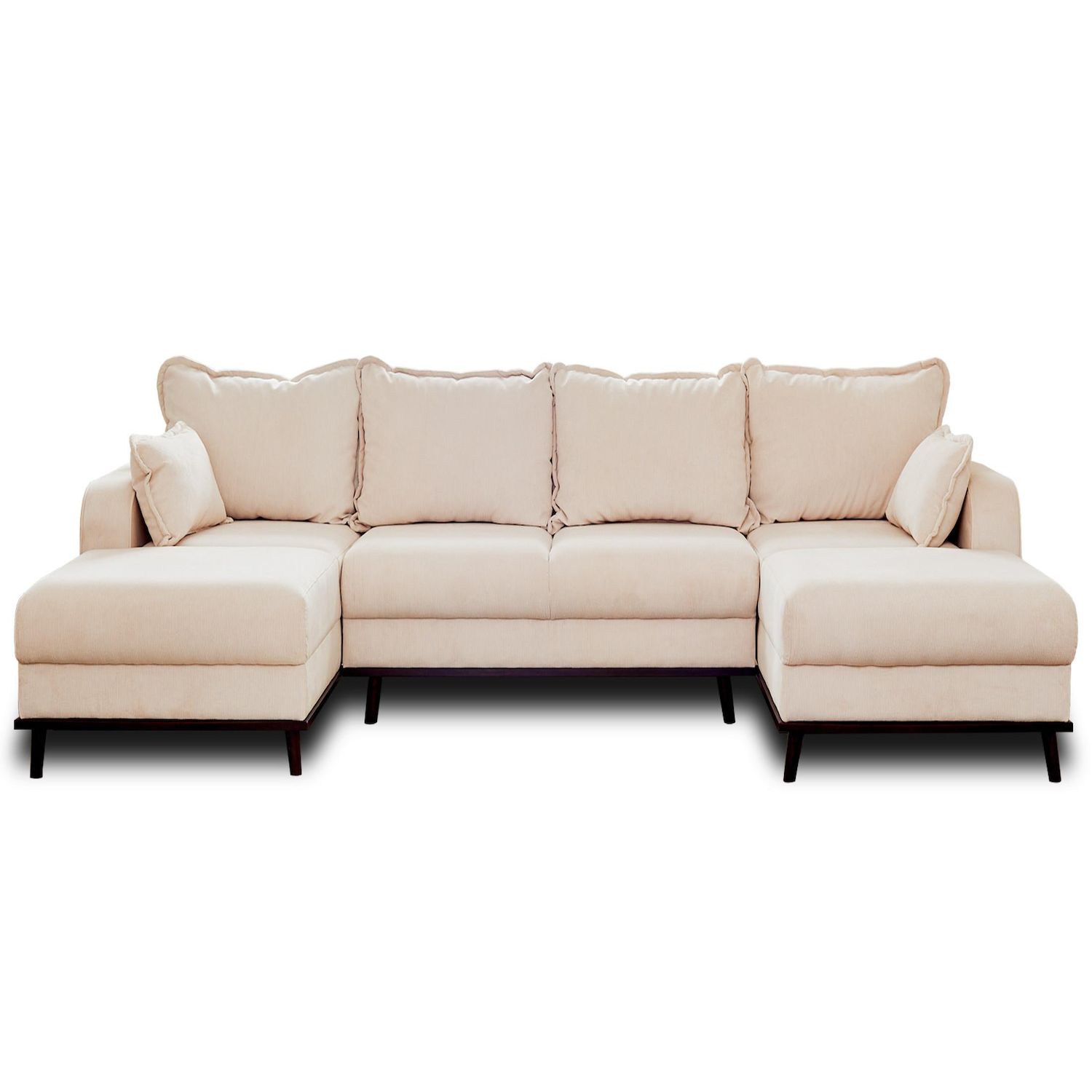 Ajoutez à votre pièce à vivre une touche déco et, confort avec le canapé panoramique Albane en U. Son style moderne avec son revêtement en velours côtelé, ses formes linéaires et ses pieds en bois teinté feront toute la différence.
