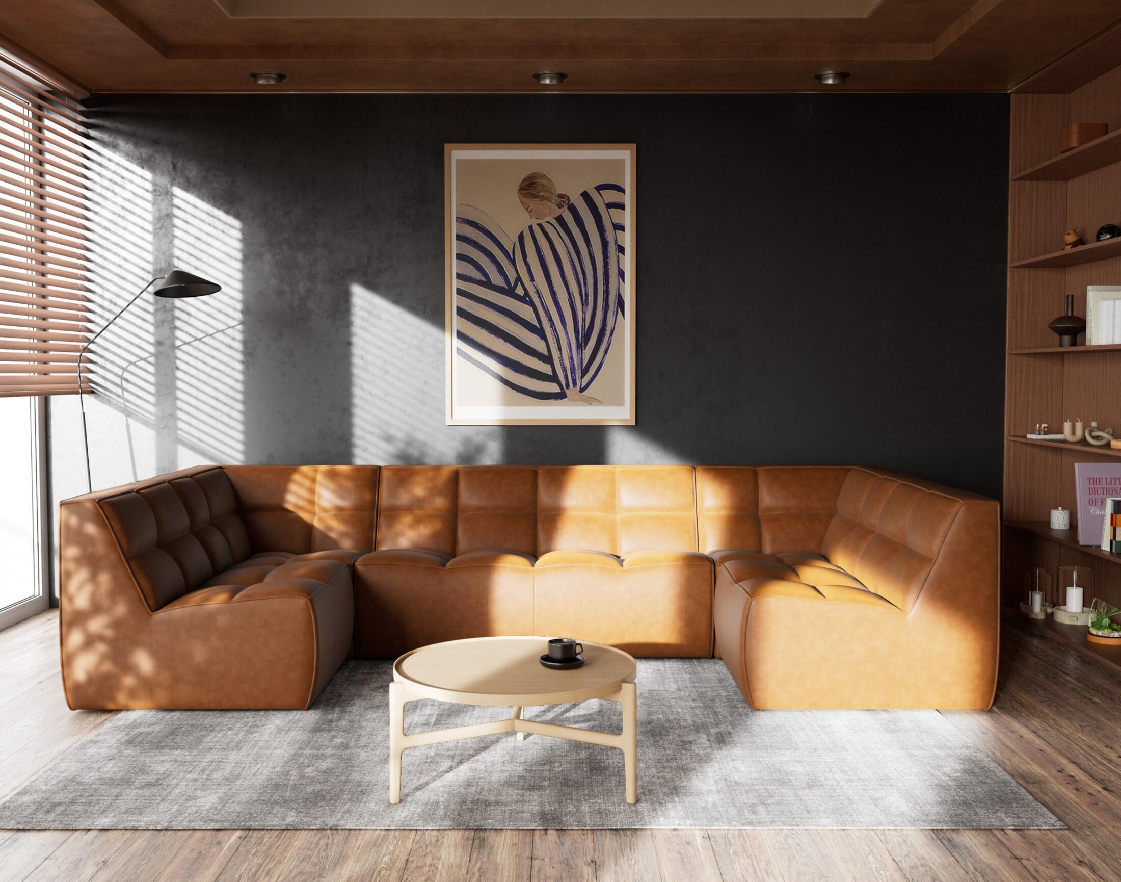 Alya - canapé modulable panoramique 7 places en simili