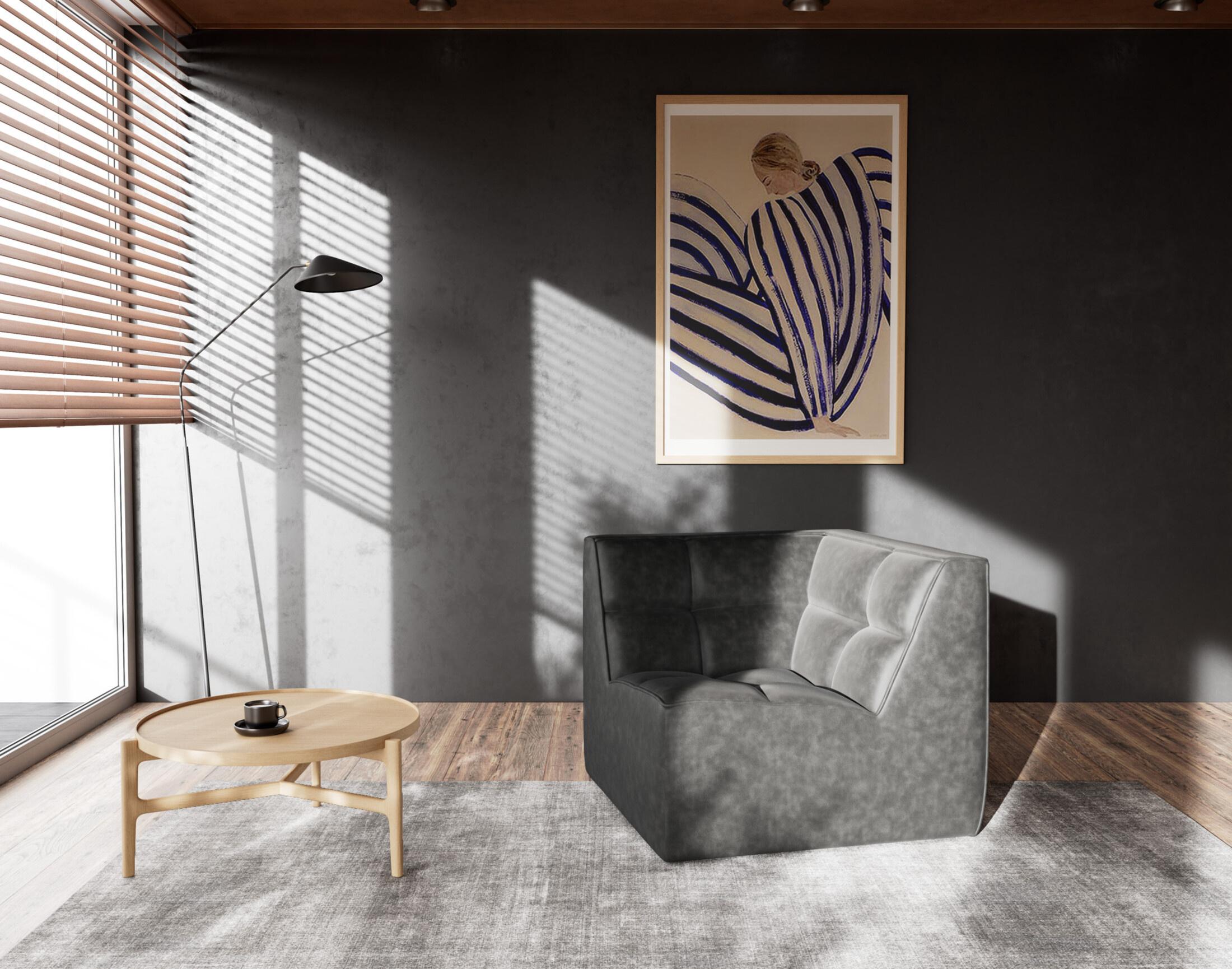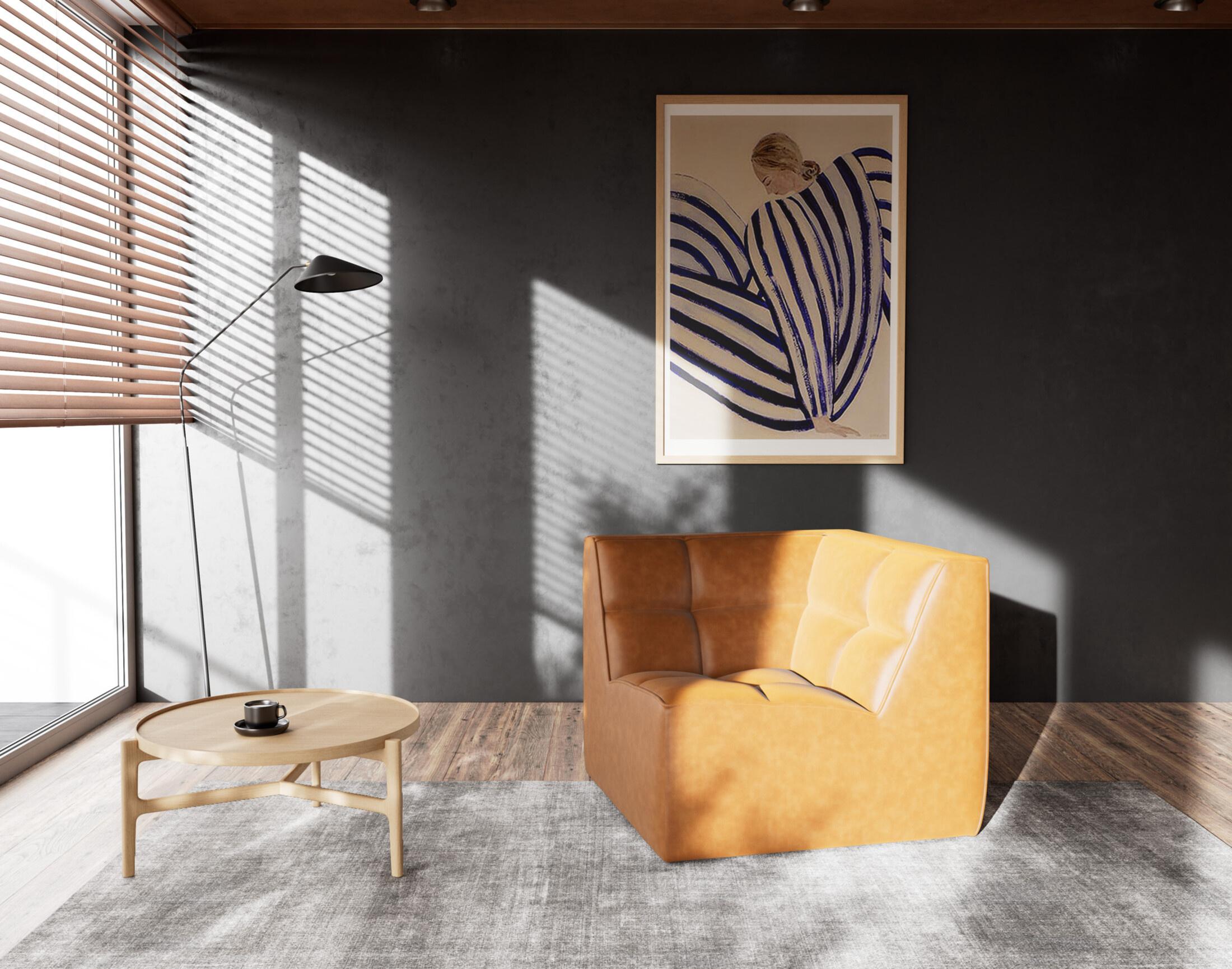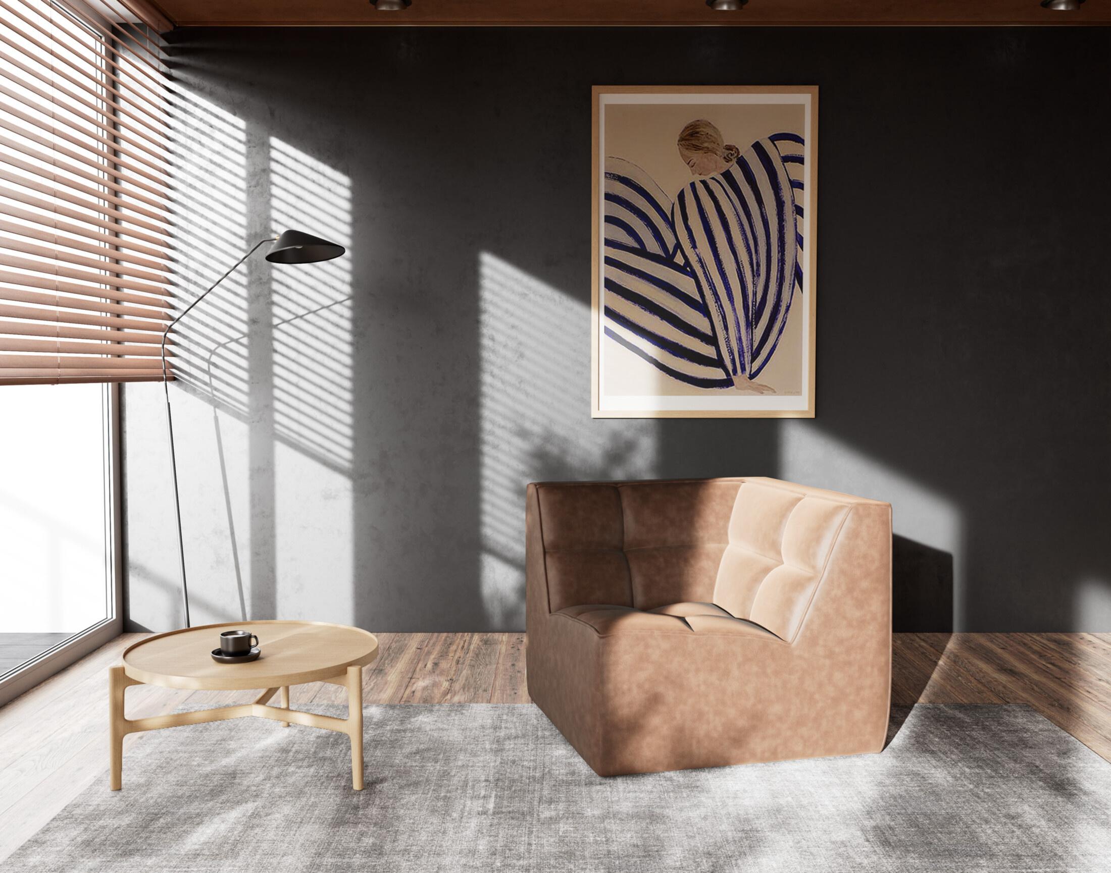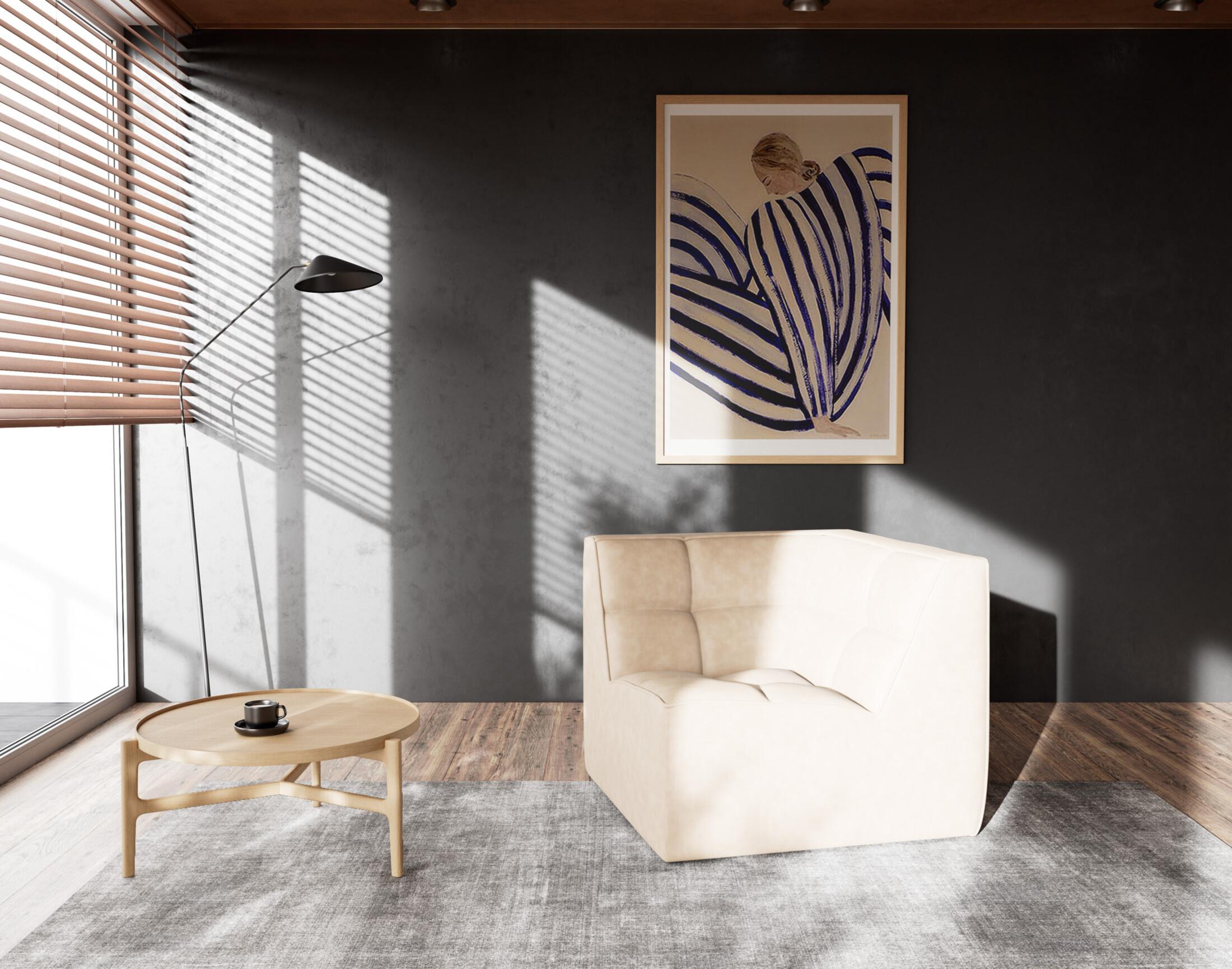 Habillé d'un tissu simili doux au toucher, ce module mêle esthétique soignée et confort durable. Son design sans fioriture met en valeur des finitions nettes et un style affirmé, capable de s'intégrer dans de nombreux univers déco. Fabriqué en Europe, le module d'angle Alya allie savoir-faire et modularité pour créer un espace de vie chaleureux, à votre image.