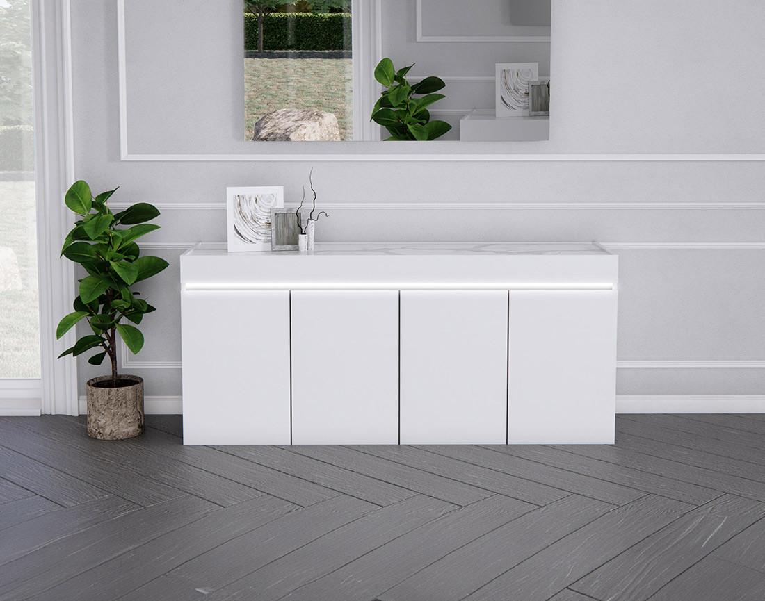 Amaury - buffet bas - blanc - plateau effet marbre - 208 cm