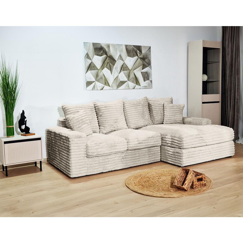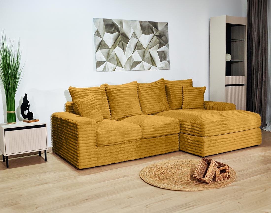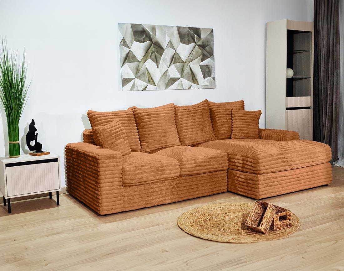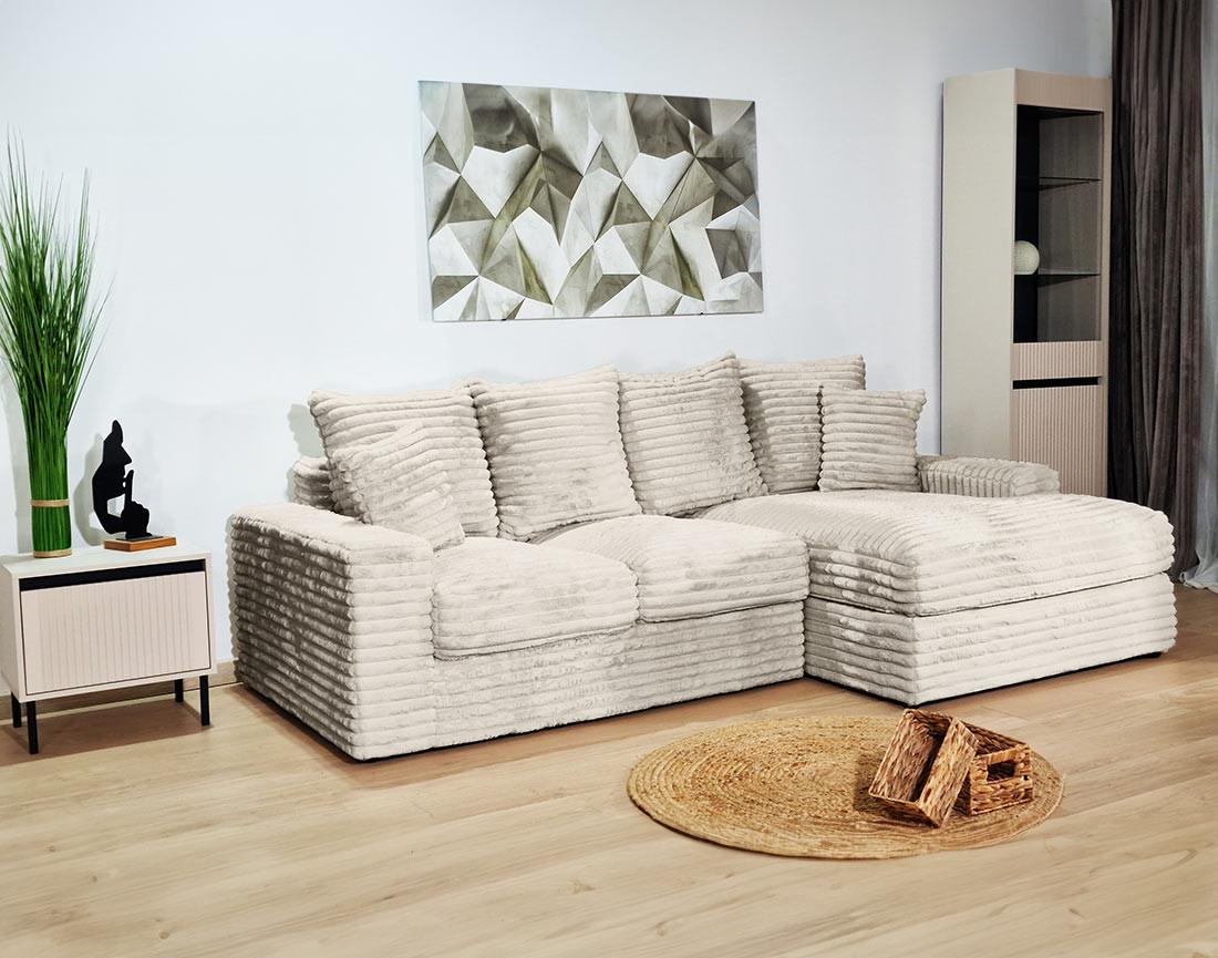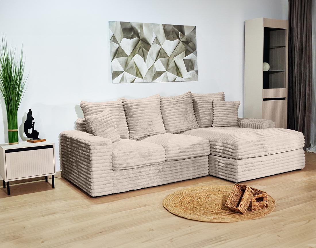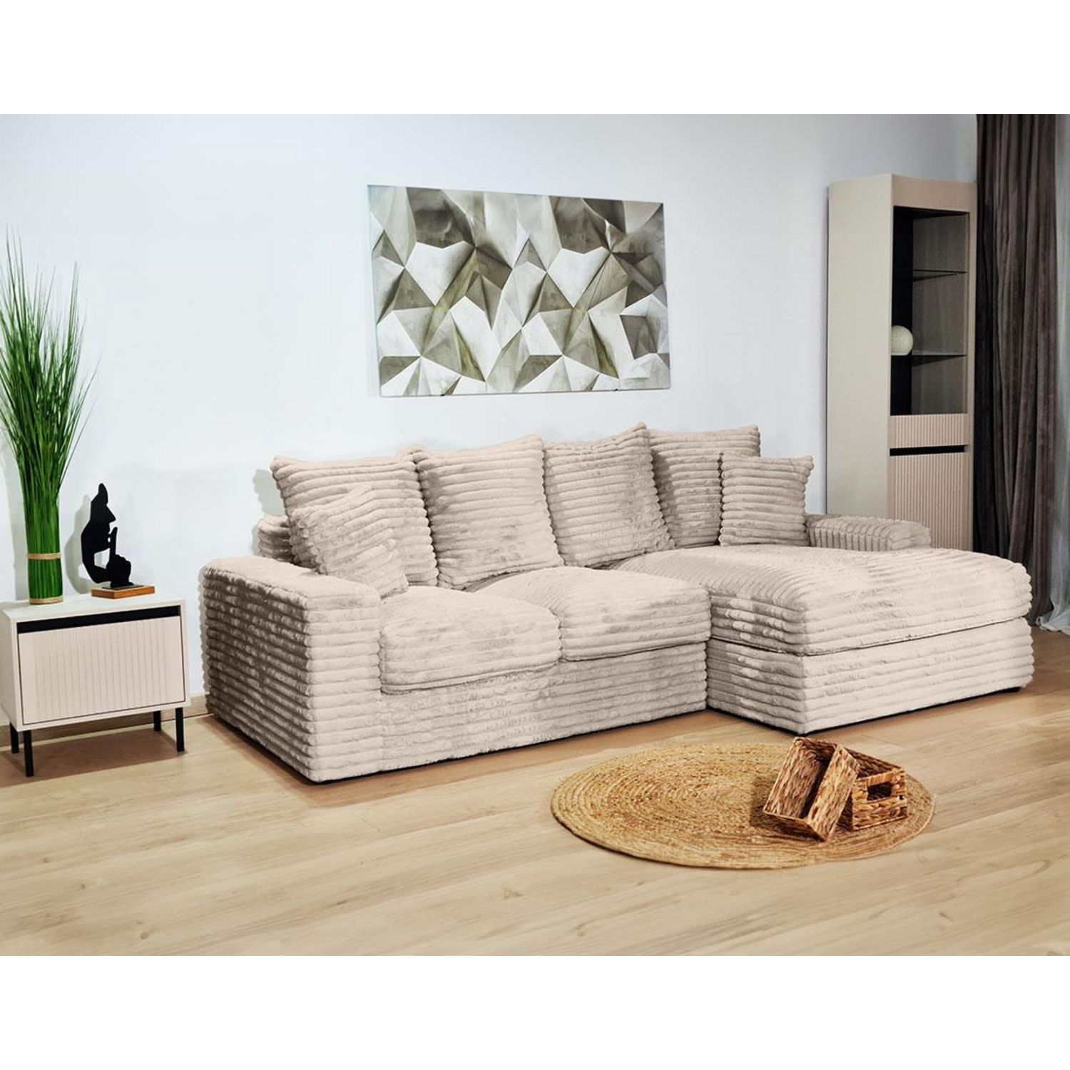 Laissez vous séduire par le Andy canapé d'angle droit 4 places en fausse fourrure côtelée, un bijou de confort et d'élégance. Ce canapé se distingue par son assise moelleuse et bombée, qui offre un soutien optimal tout en invitant à la détente. Les gros coussins de dossier, également d'une douceur incomparable, enveloppent votre dos pour un confort absolu, idéal pour vos moments de repos ou vos soirées conviviales. Avec sa fausse fourrure côtelée, ce canapé apporte une touche moderne et sophistiquée à votre intérieur, tout en alliant esthétique et douceur au toucher.