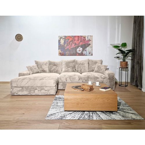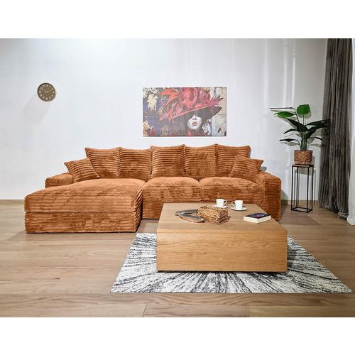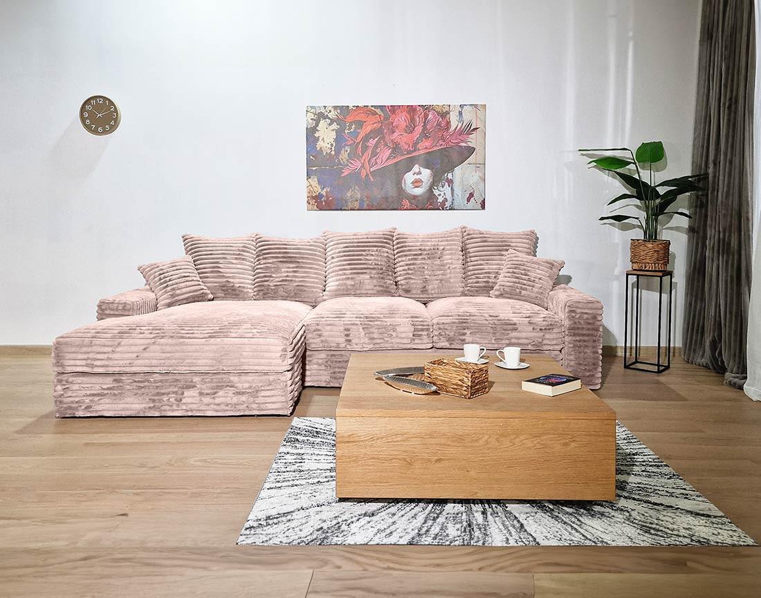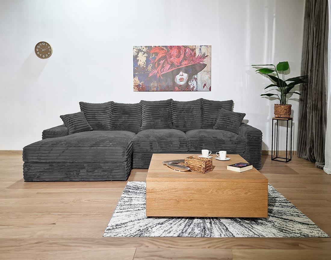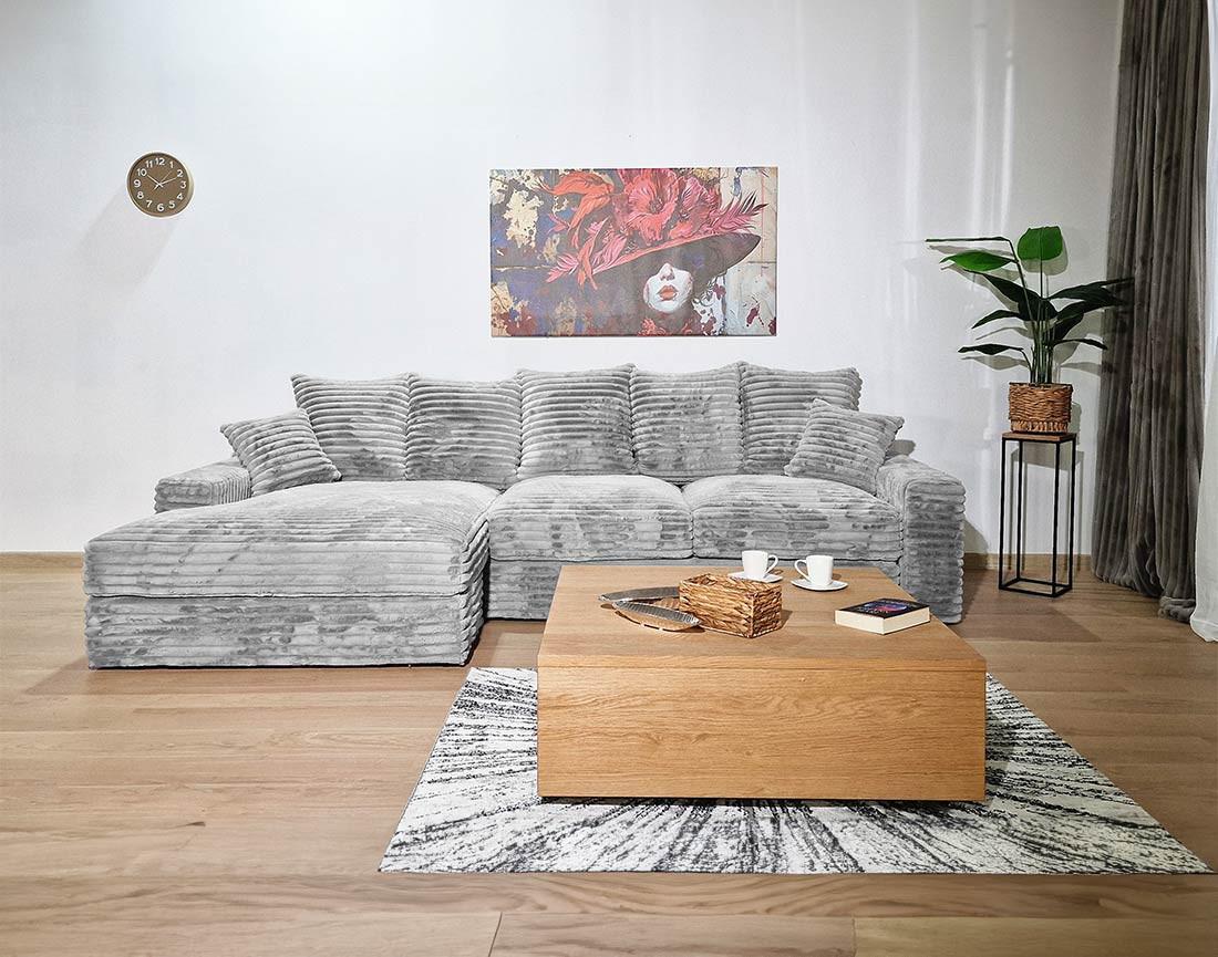 Andy - canapé d'angle gauche 5 places en fausse fourrure côtelée