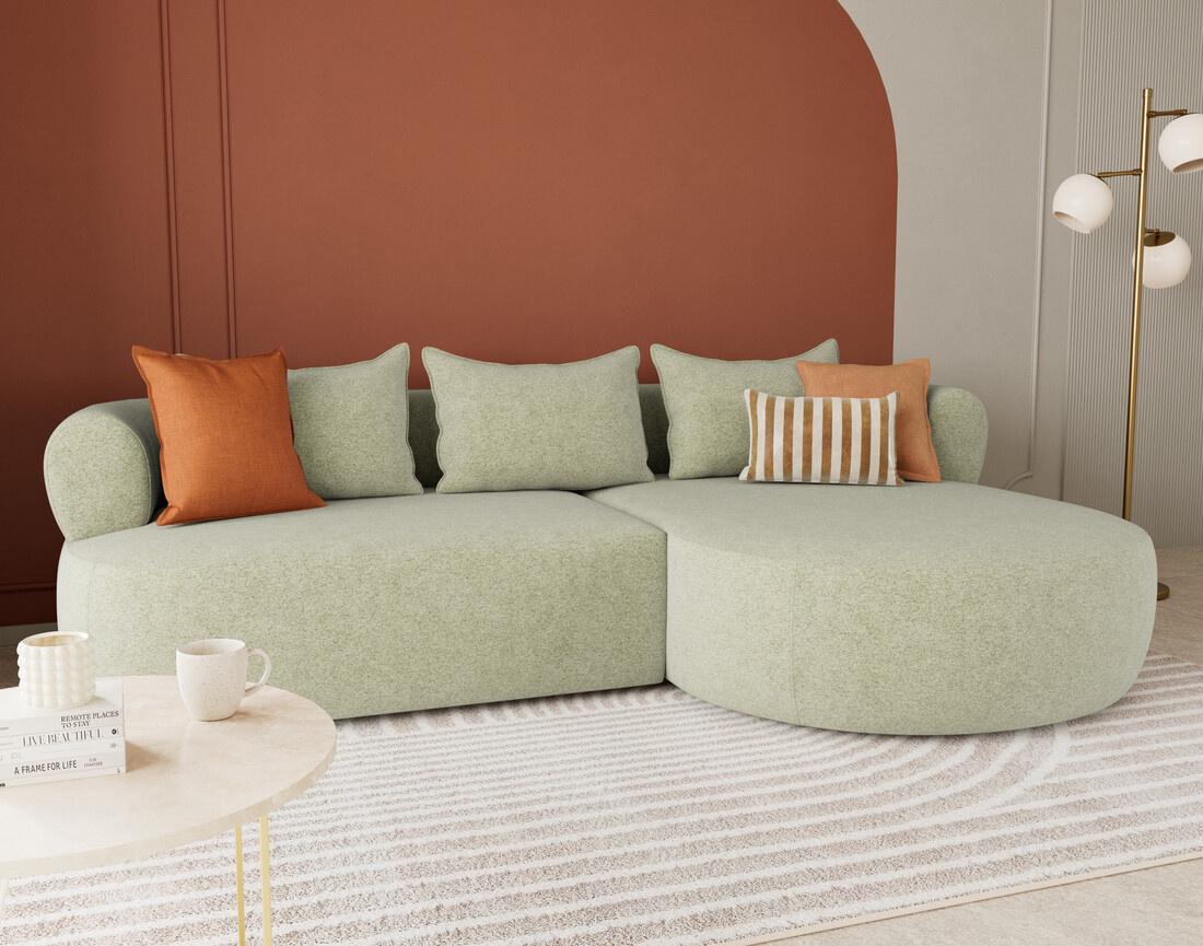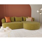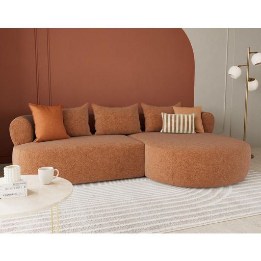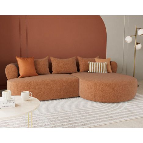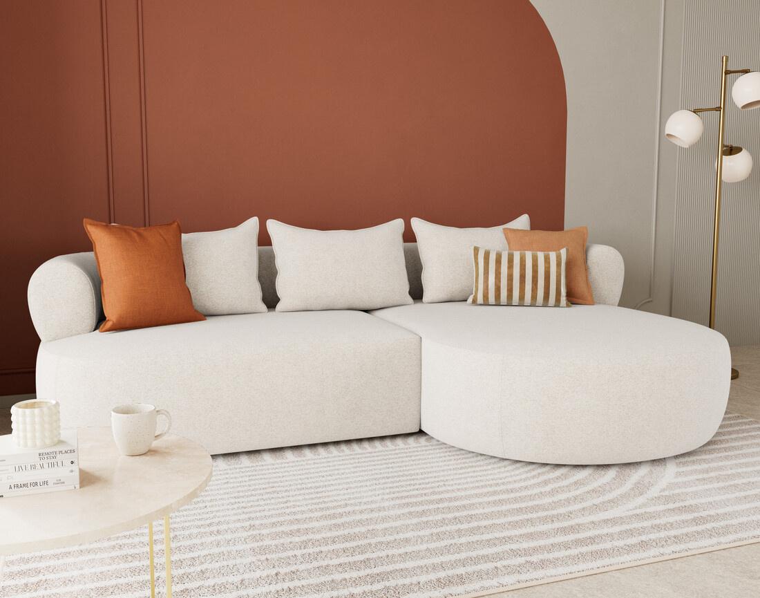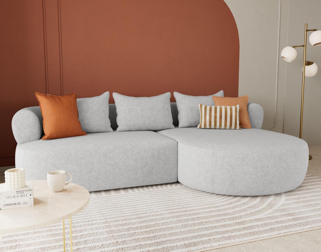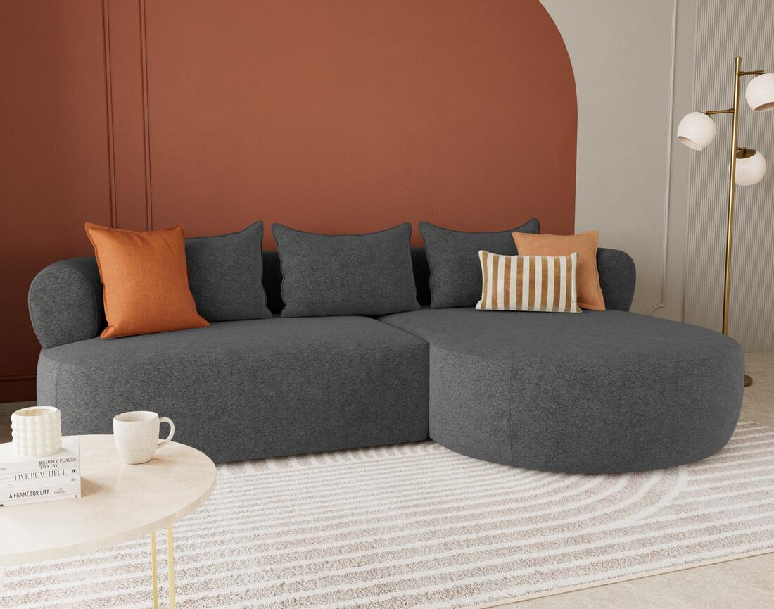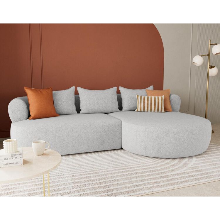 Le canapé d'angle droit Angela impose son style avec une silhouette élégante soulignée par des dossiers arrondis et une méridienne ultra tendance. Son design fluide et accueillant transforme votre salon en un espace cosy et chaleureux. Pensé pour le confort, il offre une belle largeur et une profondeur d'assise idéale pour s'installer longuement, que ce soit pour lire, discuter ou simplement se détendre.