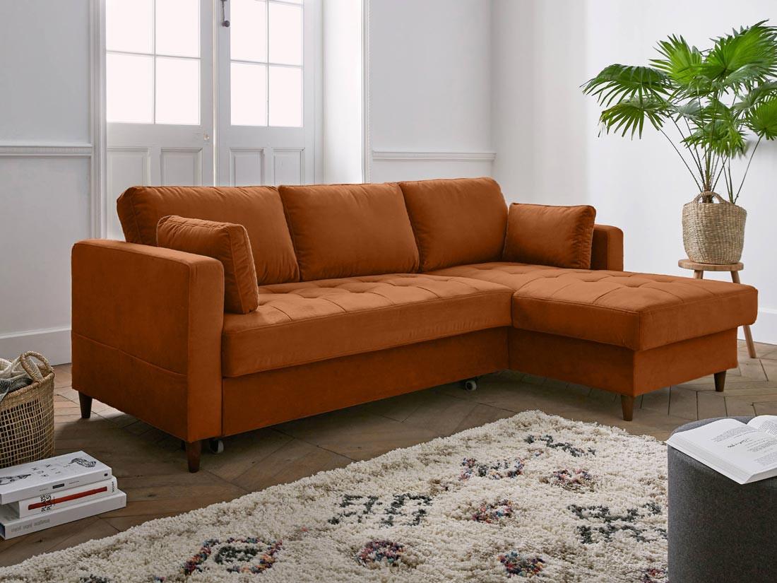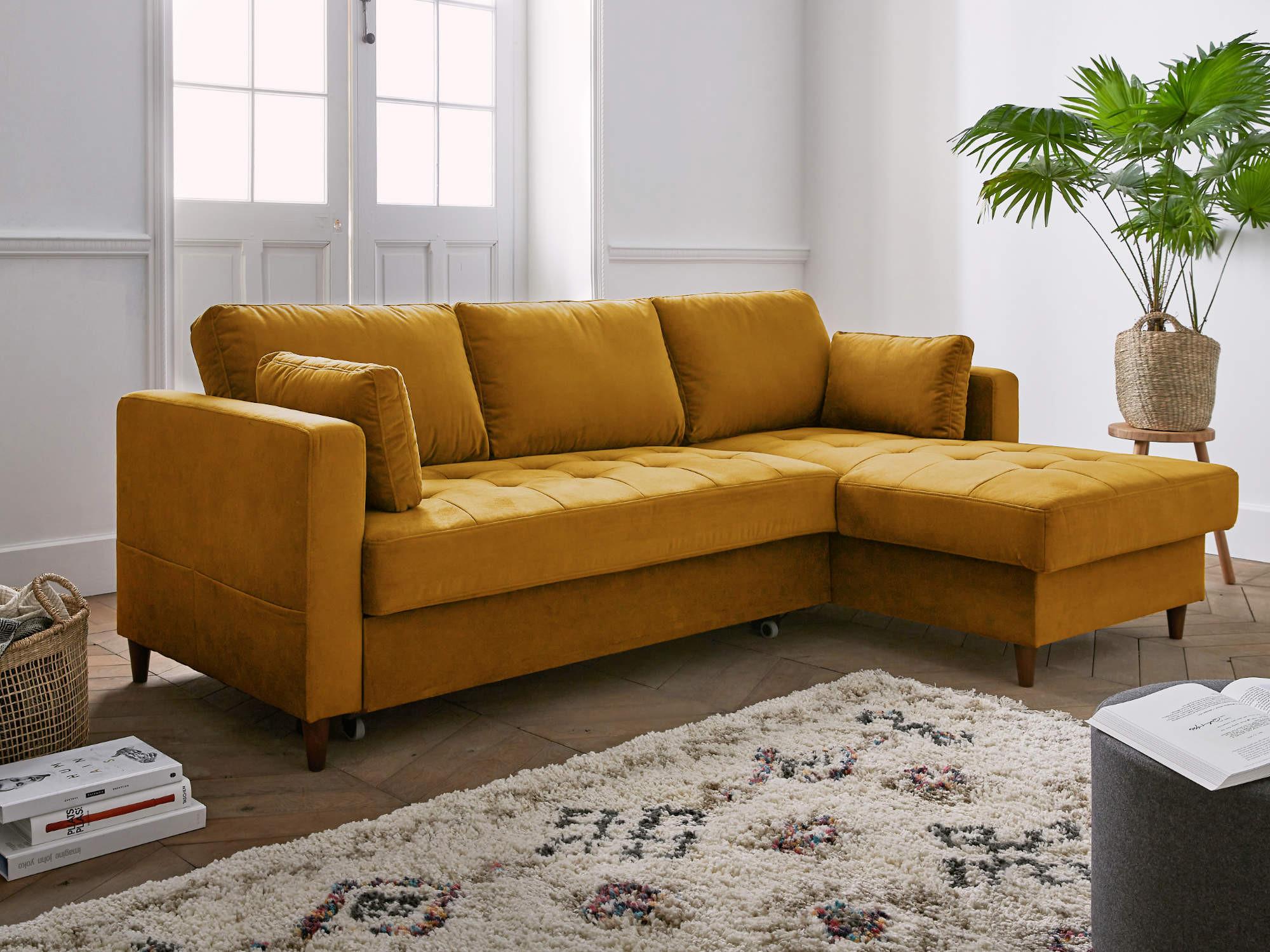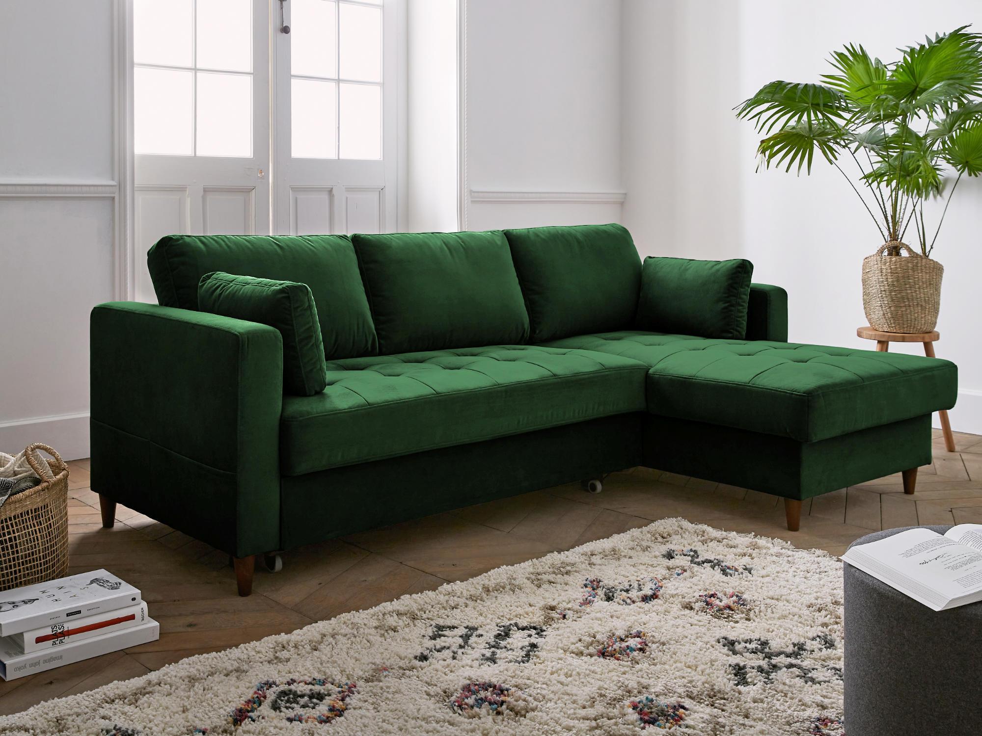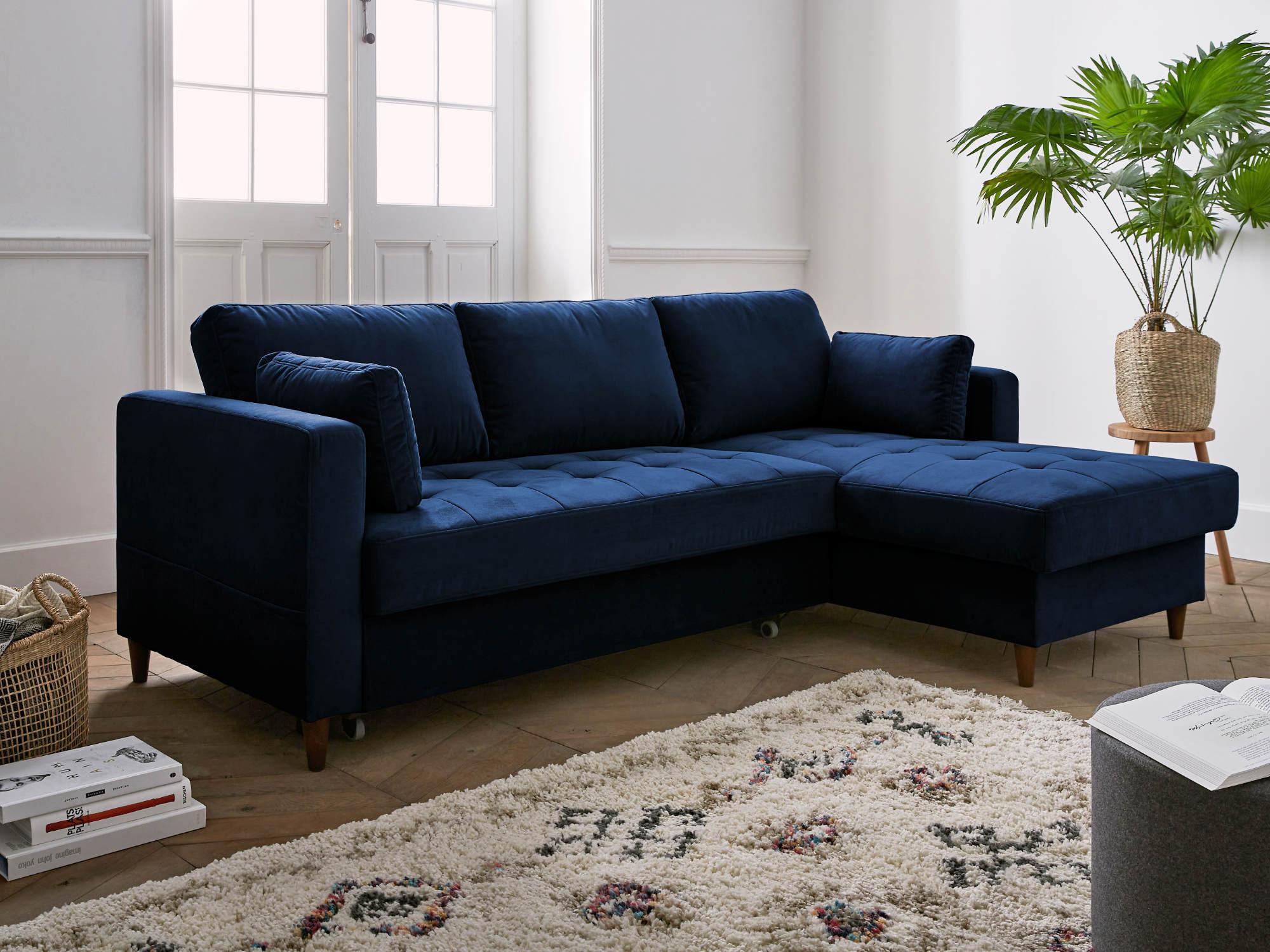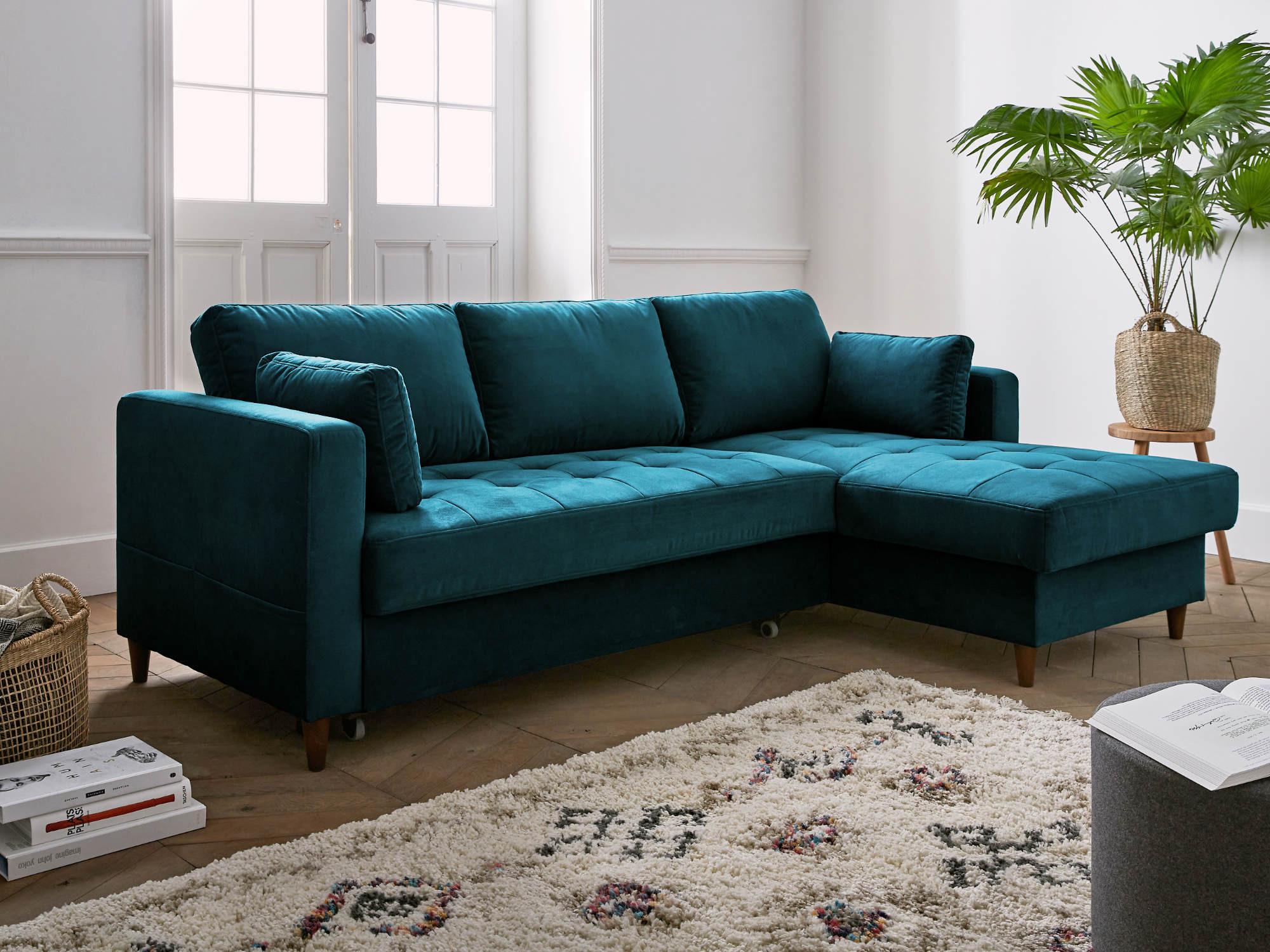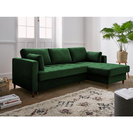 Anna - canapé d'angle droit - 4 places - convertible avec coffre - en velours