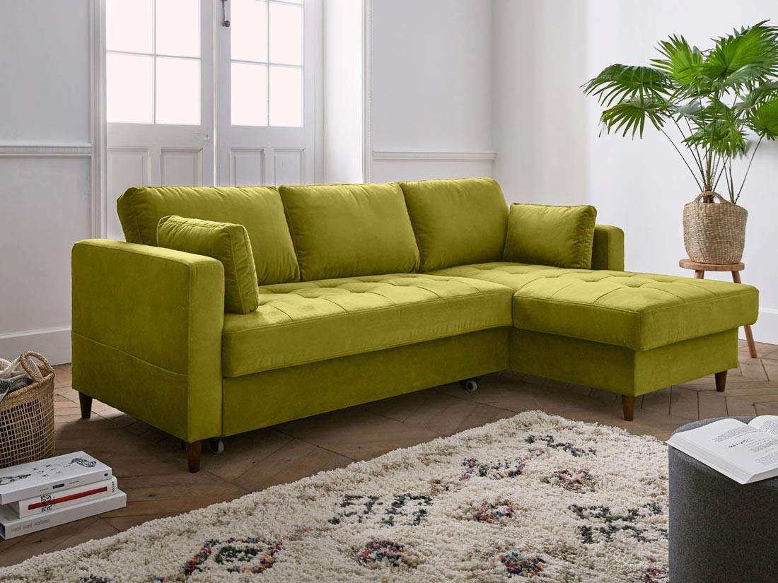 Ce joli canapé d'angle Anna plaira à toute la famille grâce à son style contemporain. Le revêtement en velours rend le canapé agréable au toucher. Son assise capitonnée donne un charme et un style unique qui conviendra parfaitement avec tout style de décoration d'intérieure. De plus, vous avez le choix dans les différents coloris proposés. Les coussins de dossiers sont travaillés afin qu'ils gardent leur souplesse ainsi que leur forme.