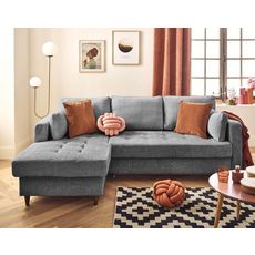 Anna - canapé d'angle gauche 4 places convertible avec coffre en velours texturé