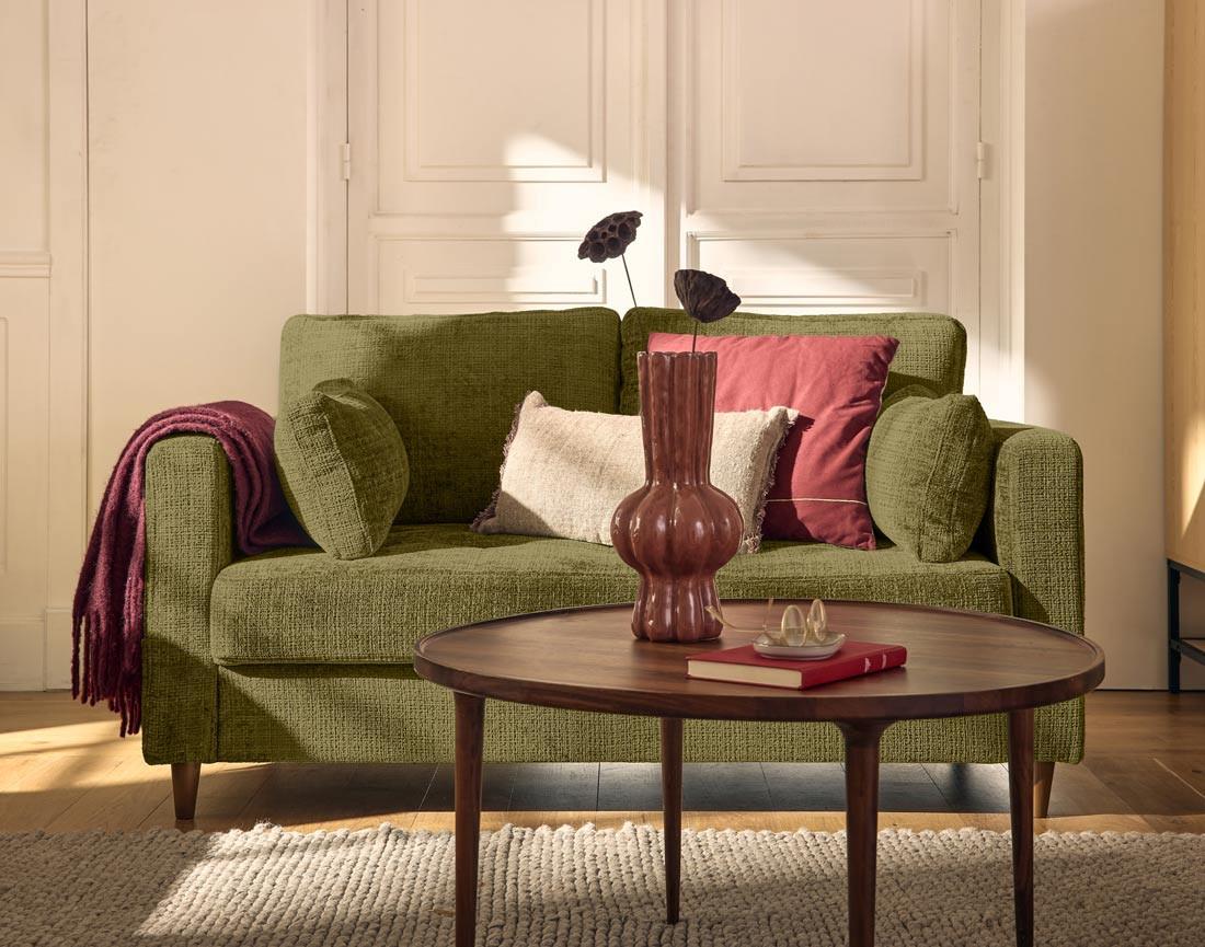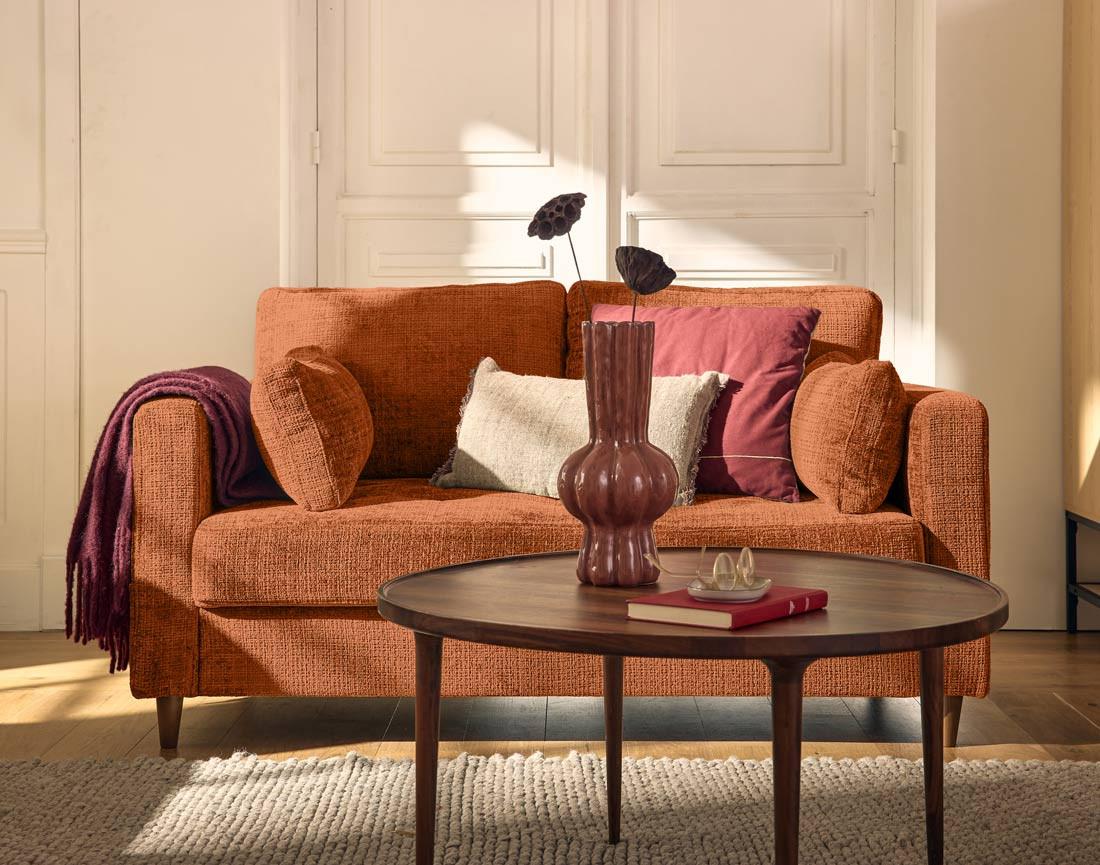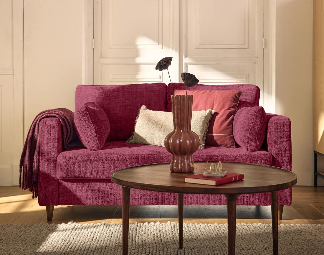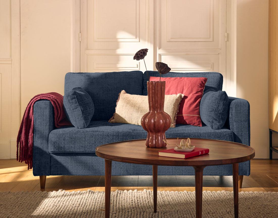 Le canapé 2 places Anna est un concentré de style et de confort. Idéal pour les espaces réduits ou en complément d'un grand canapé, il attirera tous les regards avec son design soigné. Son revêtement en velours texturé, doux et sophistiqué, transformera instantanément votre salon. On apprécie aussi ses pieds en bois qui apportent une touche cossue à l'ensemble. Disponible dans des coloris tendance, mais surtout intemporels, comme le bleu, le vert olive ou le prune, il s'adapte à toutes les ambiances déco.