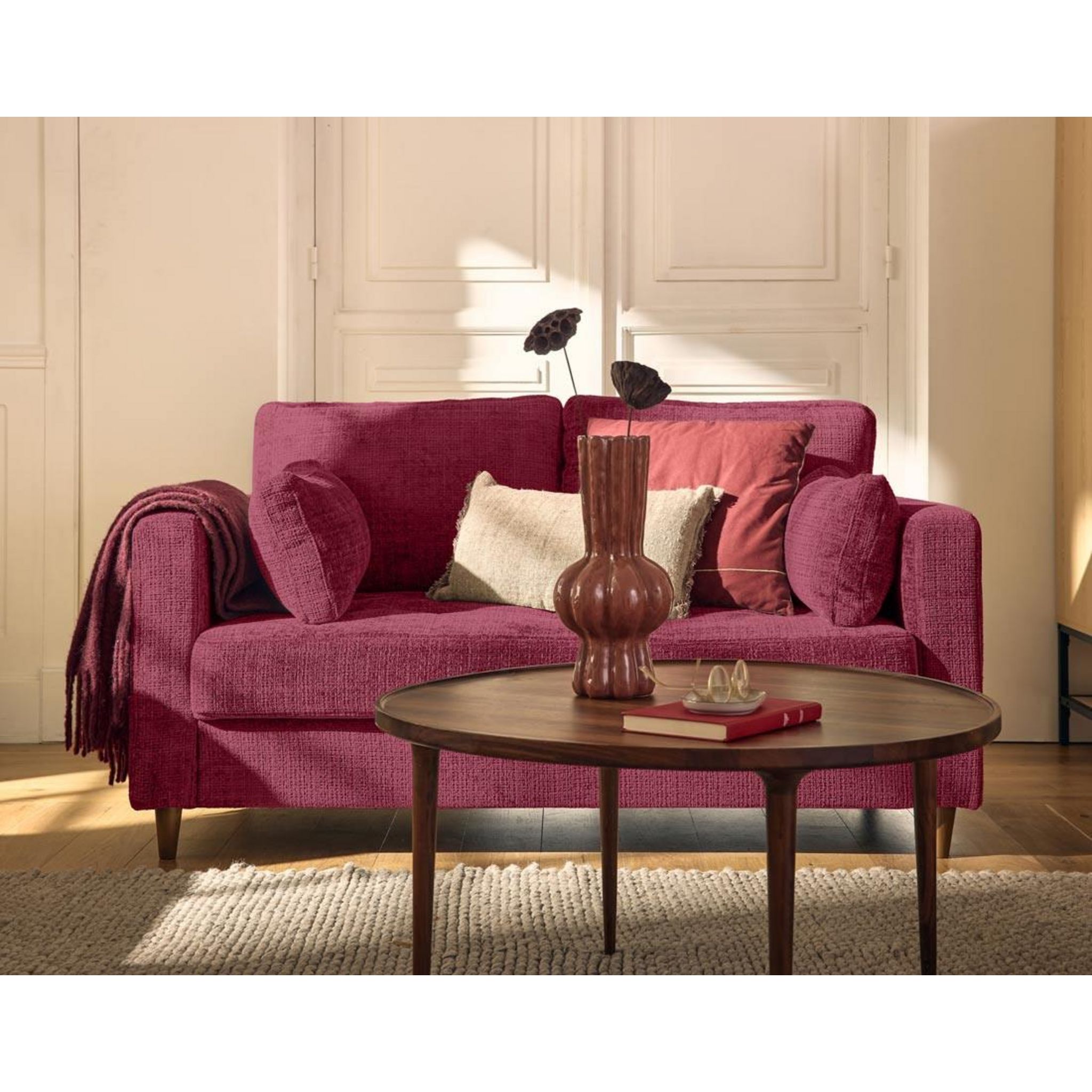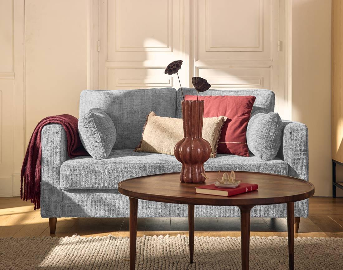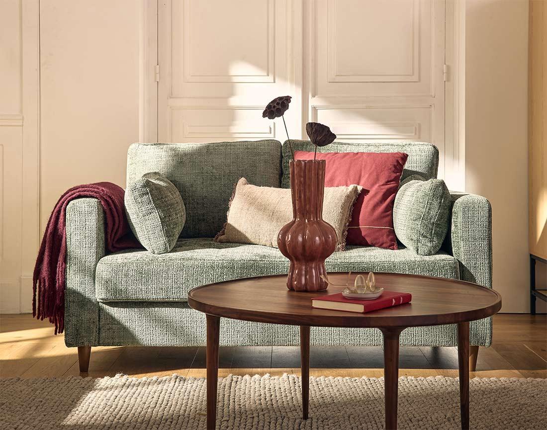 Le canapé 2 places Anna est un concentré de style et de confort. Idéal pour les espaces réduits ou en complément d'un grand canapé, il attirera tous les regards avec son design soigné. Son revêtement en velours texturé, doux et sophistiqué, transformera instantanément votre salon. On apprécie aussi ses pieds en bois qui apportent une touche cossue à l'ensemble. Disponible dans des coloris tendance, mais surtout intemporels, comme le bleu, le vert olive ou le prune, il s'adapte à toutes les ambiances déco.