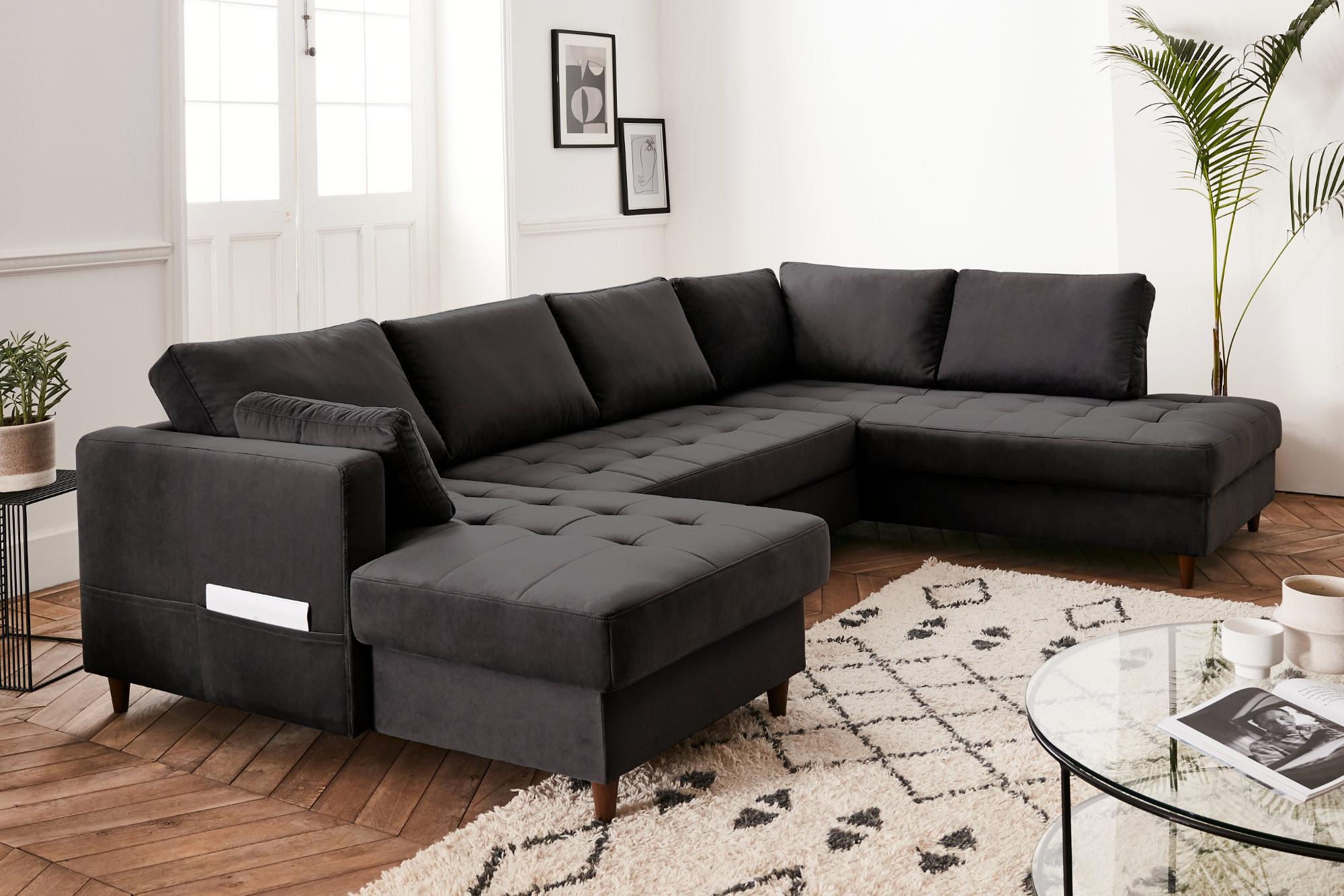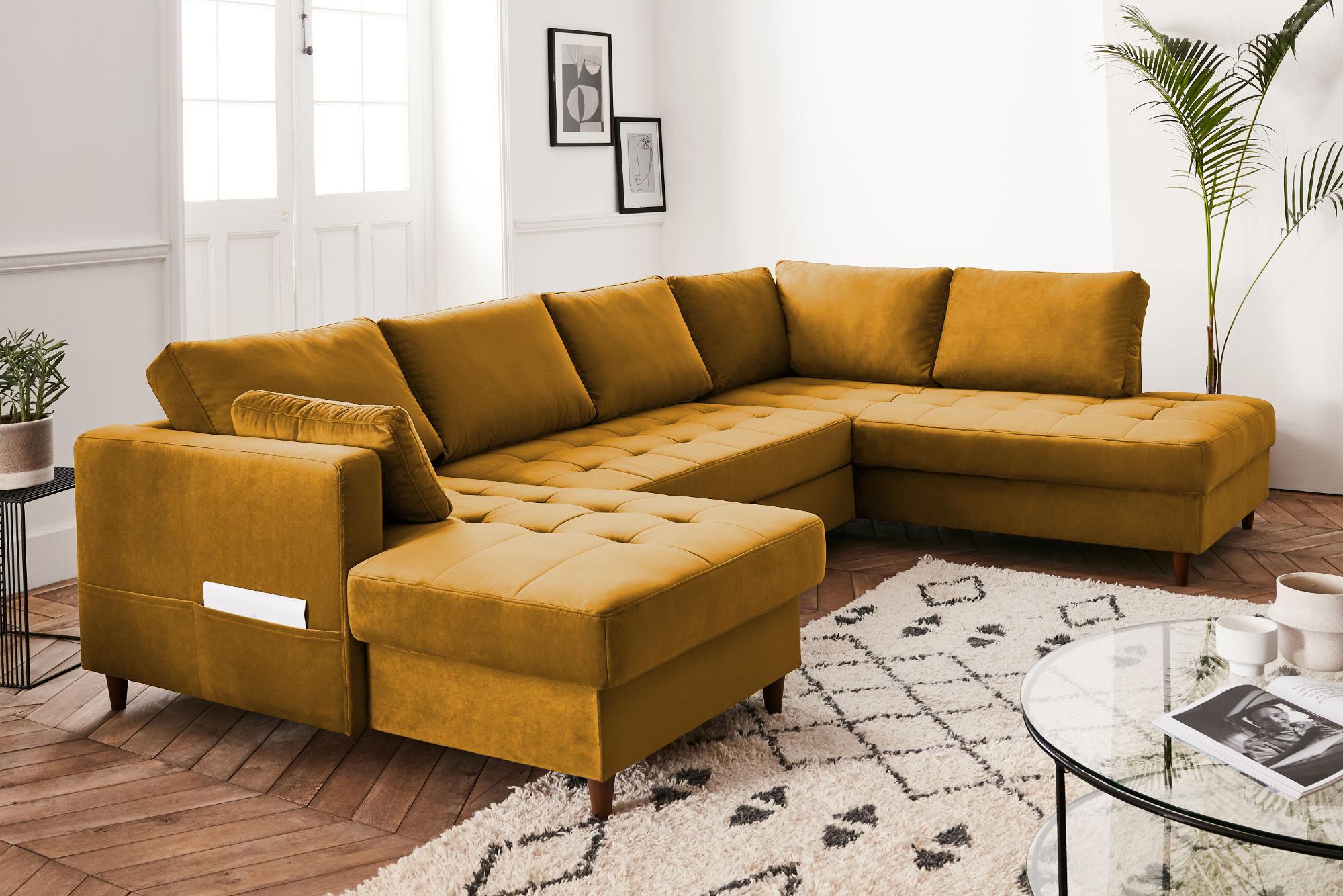 Ce joli canapé panoramique Anna plaira à toute la famille grâce à son style contemporain. Le revêtement en velours rend le canapé agréable au toucher. Son assise capitonnée donne un charme et un style unique qui conviendra parfaitement avec tout style de décoration d'intérieur. De plus, vous avez le choix dans les différents coloris proposés.