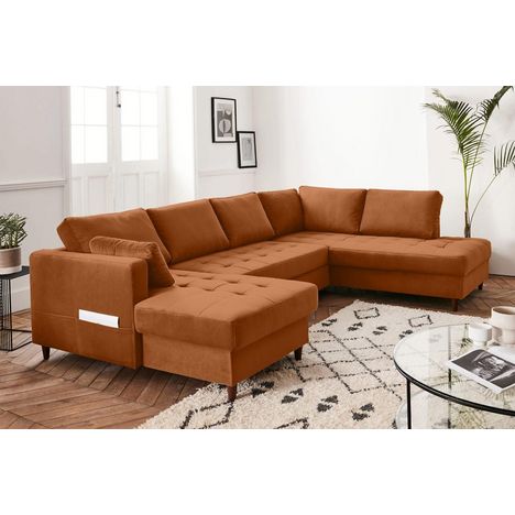 Anna - canapé panoramique d'angle droit - 7 places - convertible avec coffre - en velours