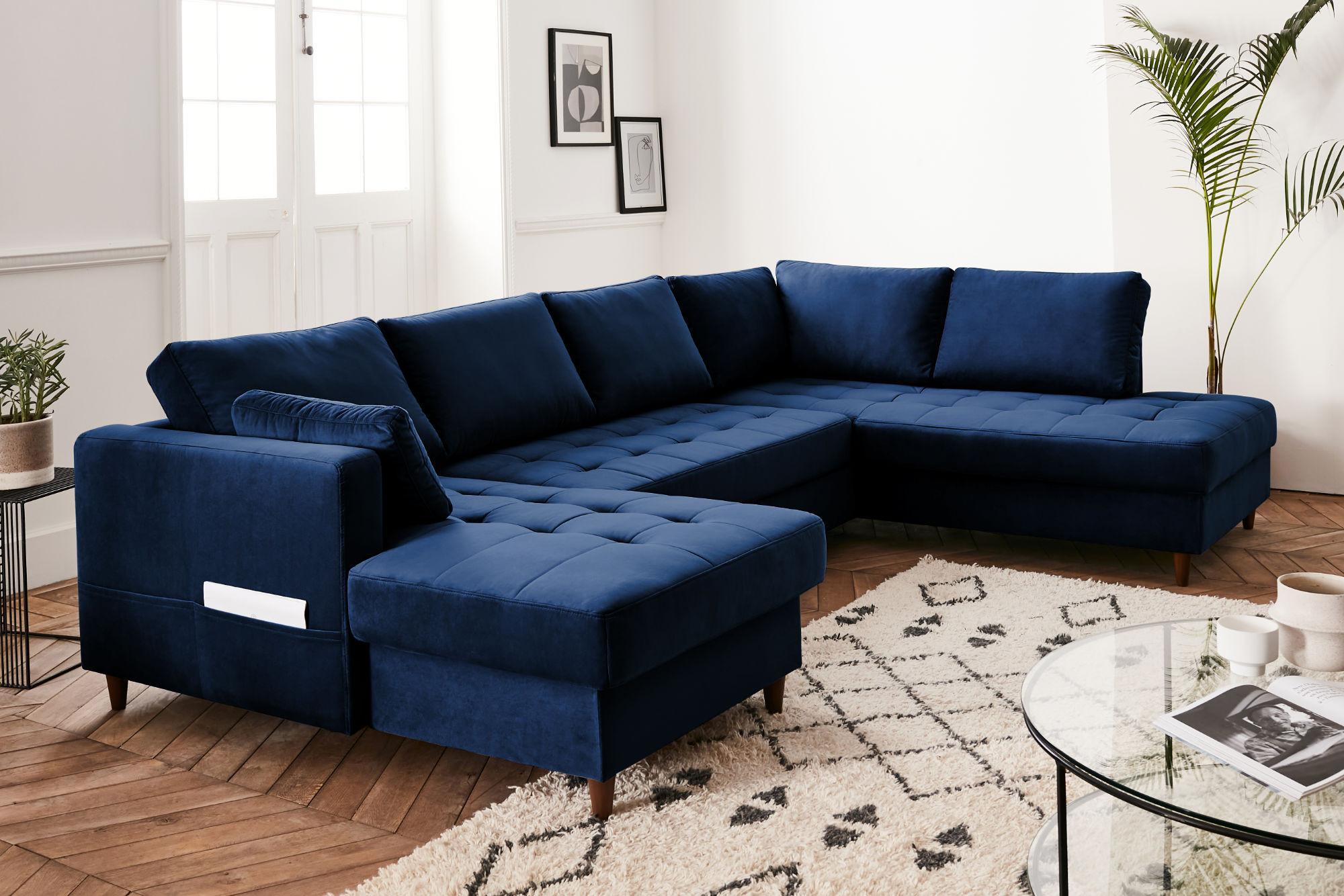Un canapé d'angle en velours