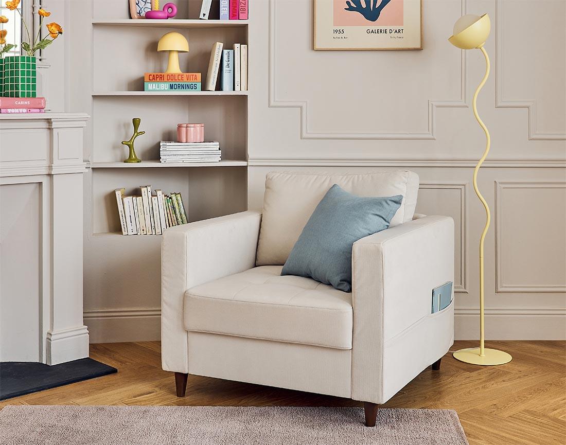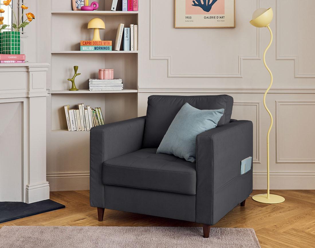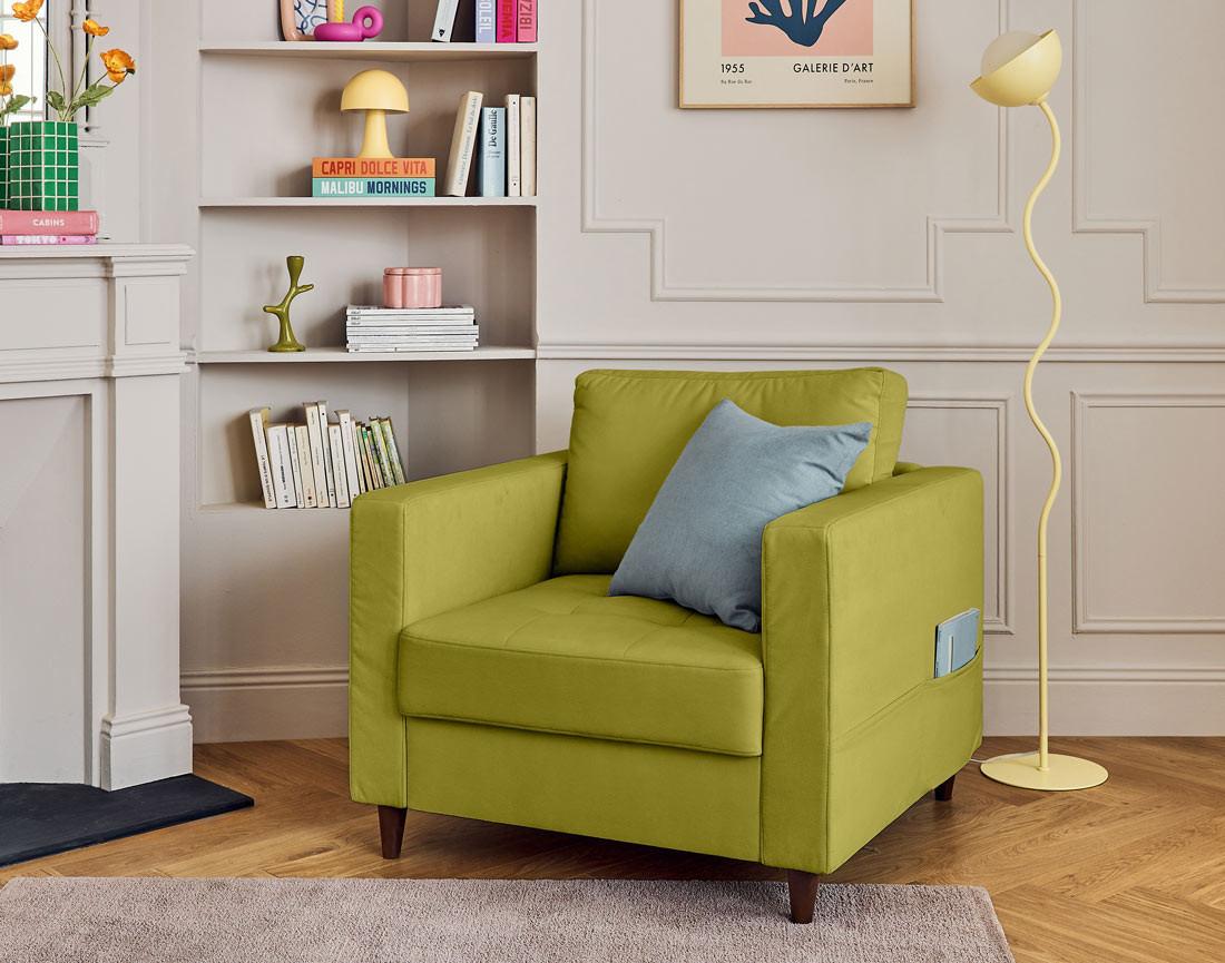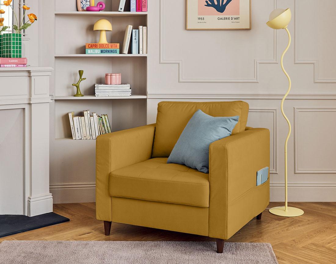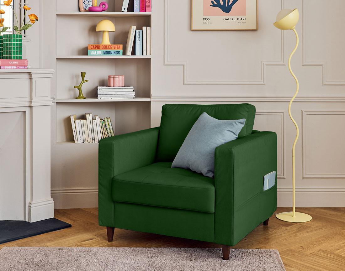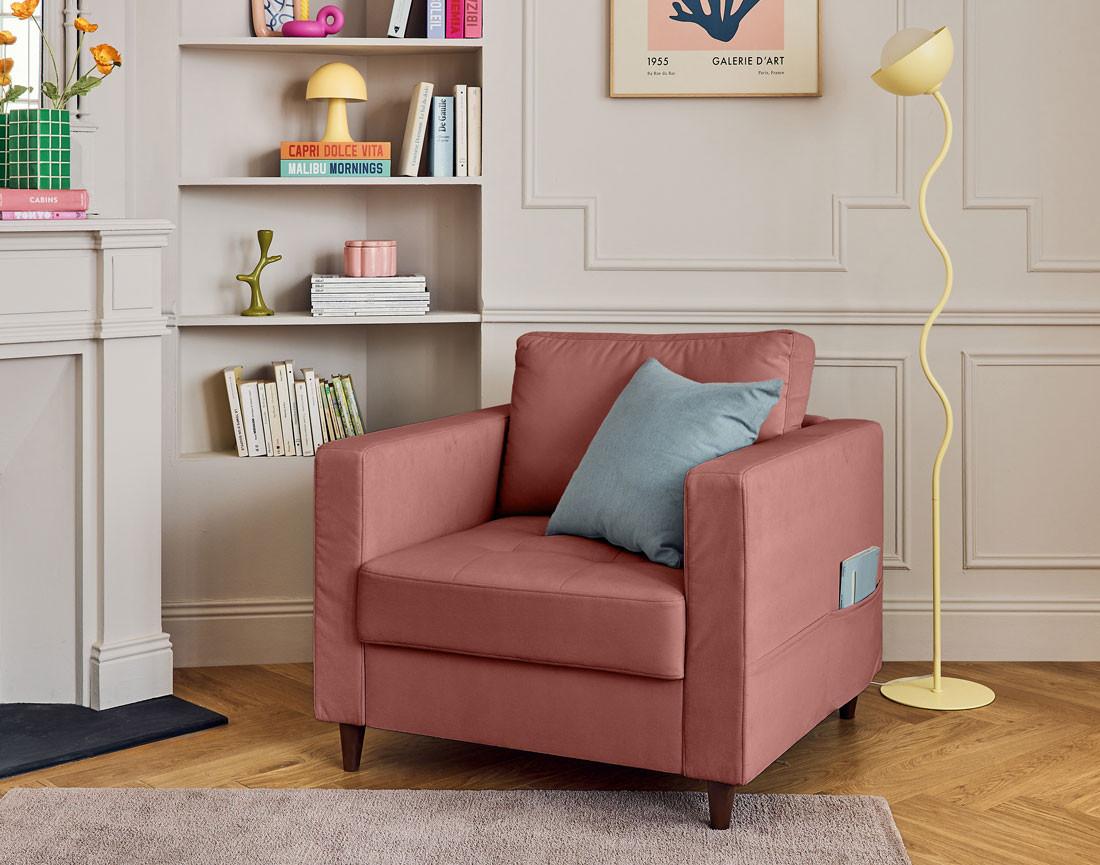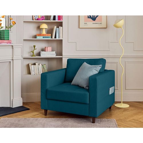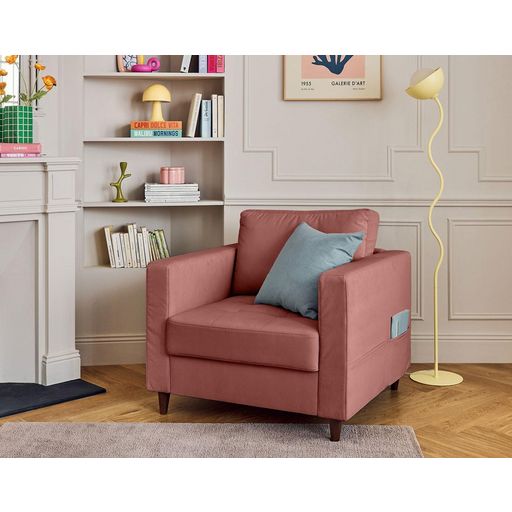 Anna - fauteuil avec poche en velours - pieds en bois