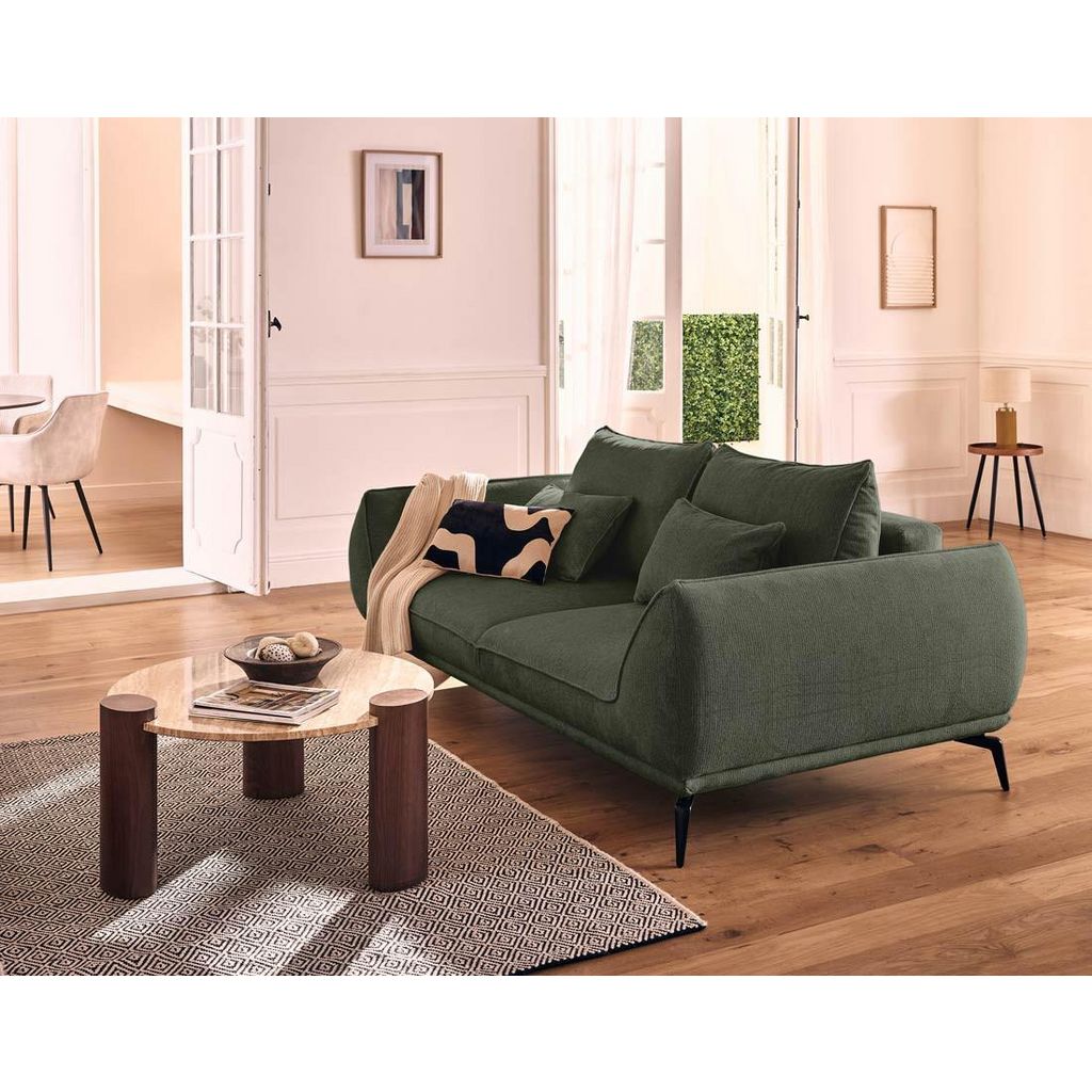 Le revêtement en tissu texturé et les coussins généreusement rembourrés du canapé Arica apporteront une touche de chaleur et de confort à votre intérieur. Au-delà d'être un modèle design, il est aussi parfait pour un usage quotidien. Grâce à ses pieds hauts en métal noir au design marqué, l'Arica offre une assise stable et confortable. Que ce soit pour un moment de détente, de lecture ou pour accueillir des invités, ce canapé ne vous décevra pas !
