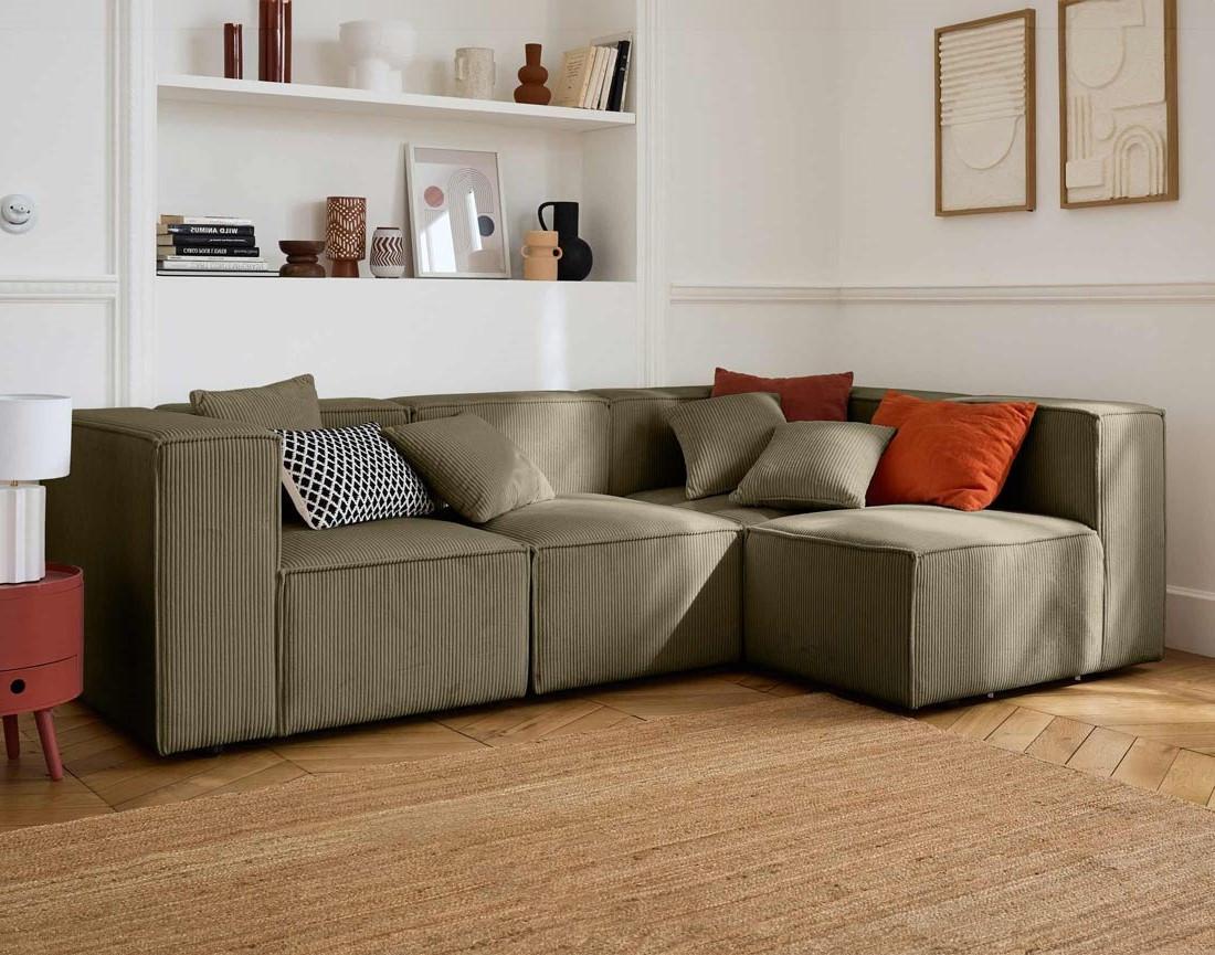 Arty - canapé modulable d'angle droit 4 places - en velours côtelé