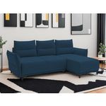 Fabriqué en Europe, le canapé d'angle Arya comporte des qualités pratiques et fonctionnelles. Grâce à son angle réversible, c'est vous qui choisissez de quel coté mettre la méridienne. Il dispose d'une fonction convertible qui se déplie rapidement en un couchage de 140x209 cm, idéale pour accueillir vos amis. Pour ranger la couette, les coussins ou plaids, un coffre de rangement est situé sous l'assise.