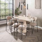 La table Aubin séduit par son design effet travertin qui apporte une touche naturelle et raffinée à la salle à manger. Idéale pour accueillir de 4 à 6 personnes, elle s'adapte aussi bien aux repas du quotidien qu'aux moments conviviaux entre amis. Facile d'entretien, elle reste toujours impeccable, même après un usage intensif.