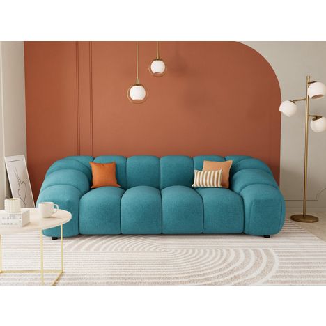 Avec ses courbes généreuses et son allure pleine de douceur, le canapé Ava 3 places s'impose comme une pièce centrale aussi audacieuse que confortable. Il séduit par son esthétique sculpturale, tout en rondeur, qui transforme instantanément votre salon en un espace contemporain et chaleureux. Chaque segment de l'assise et du dossier évoque un nuage moelleux, tout en assurant un maintien optimal grâce à une structure ferme, pensée pour durer.