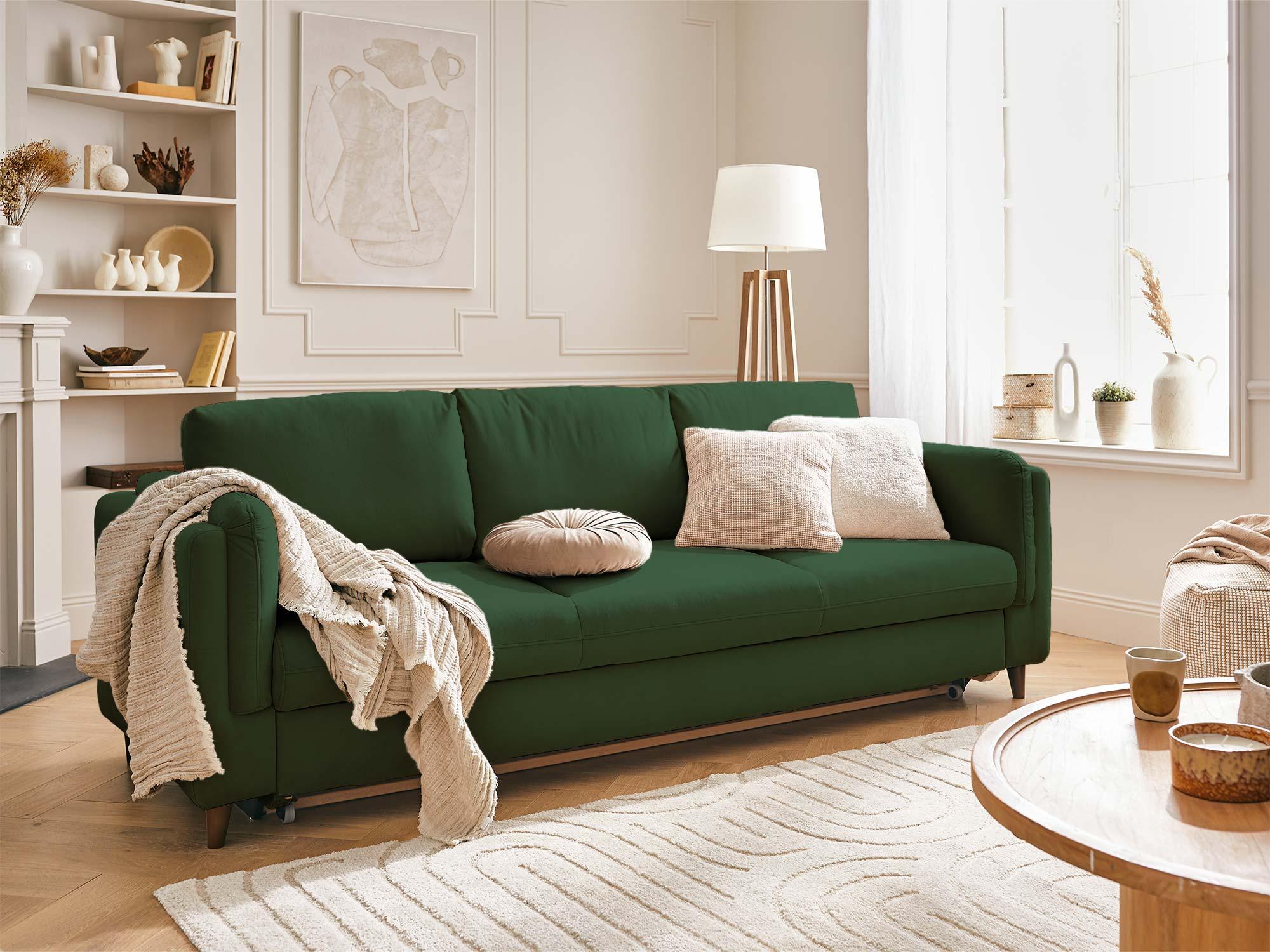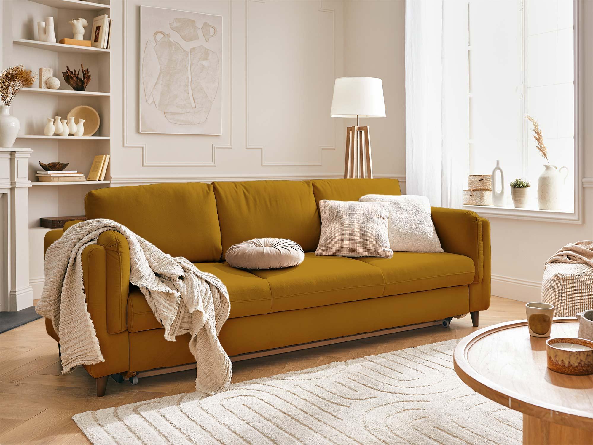 Le canapé 3 places convertible Brooke sera votre allié confort et détente pour votre salon. Décliné en un large choix de couleurs, vous pourrez associer votre décoration d'intérieur et votre canapé Brooke facilement. Son style travaillé et ses accoudoirs uniques rendent votre canapé élégant et enveloppant. Son revêtement en velours est agréable au toucher et confortable. Ses pieds en bois wengé apportent de la finition au canapé Brooke. Les coussins de dossiers sont travaillés afin qu'ils gardent leur souplesse ainsi que leur forme.