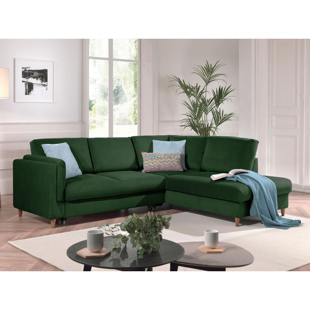 Le canapé d'angle convertible Brooke sera votre allié confort et détente pour votre salon. Décliné en un large choix de couleurs, vous pourrez facilement associer votre décoration d'intérieur et votre canapé Brooke. Son style travaillé et son accoudoir unique rendent votre canapé élégant et enveloppant. Son revêtement en velours est agréable au toucher et confortable à l'assise. Ses pieds en bois wengé apportent de la finition au canapé Brooke.