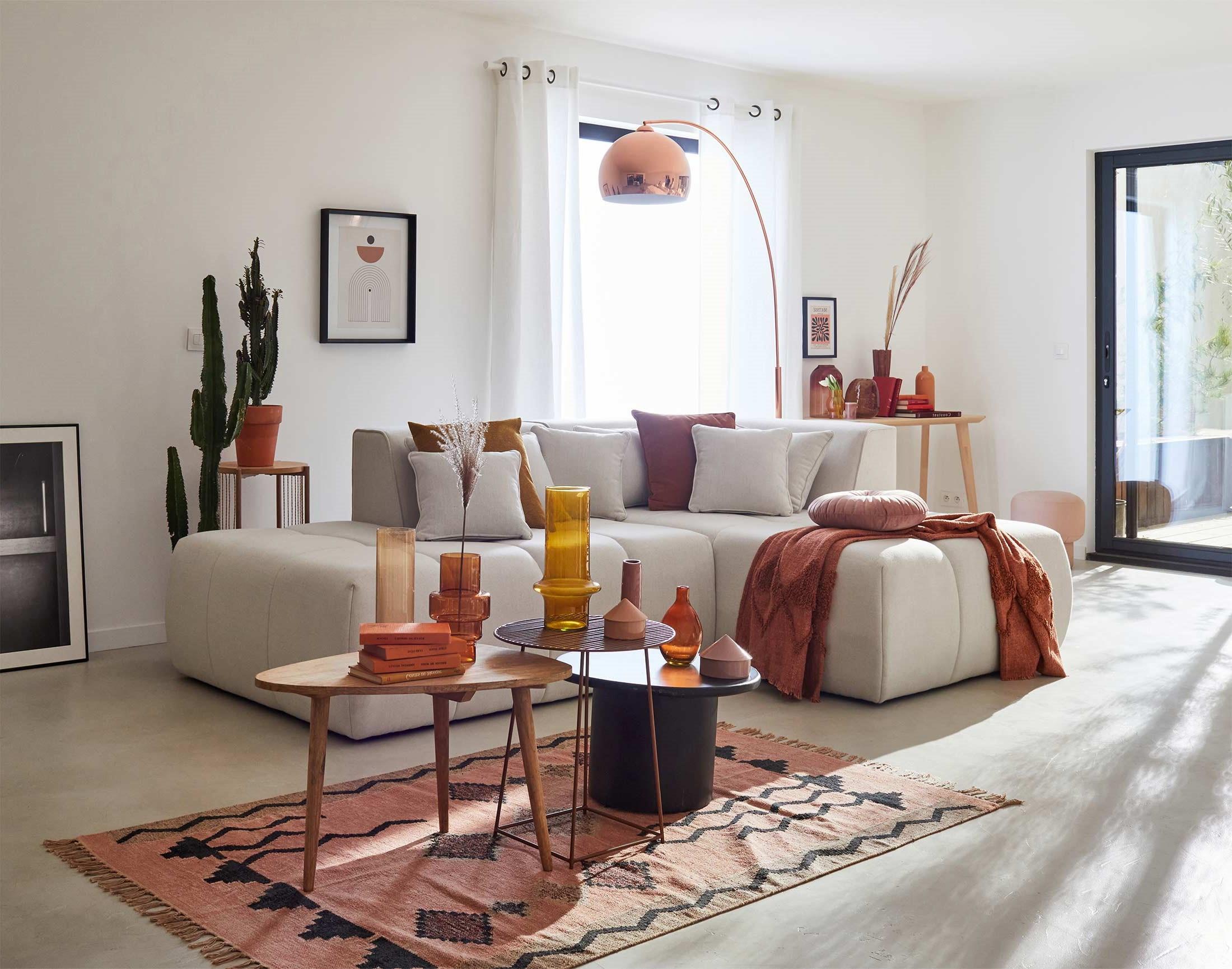 Disponible en plusieurs coloris, le canapé d'angle modulable Caracas s'annonce être l'élément central de votre salon.