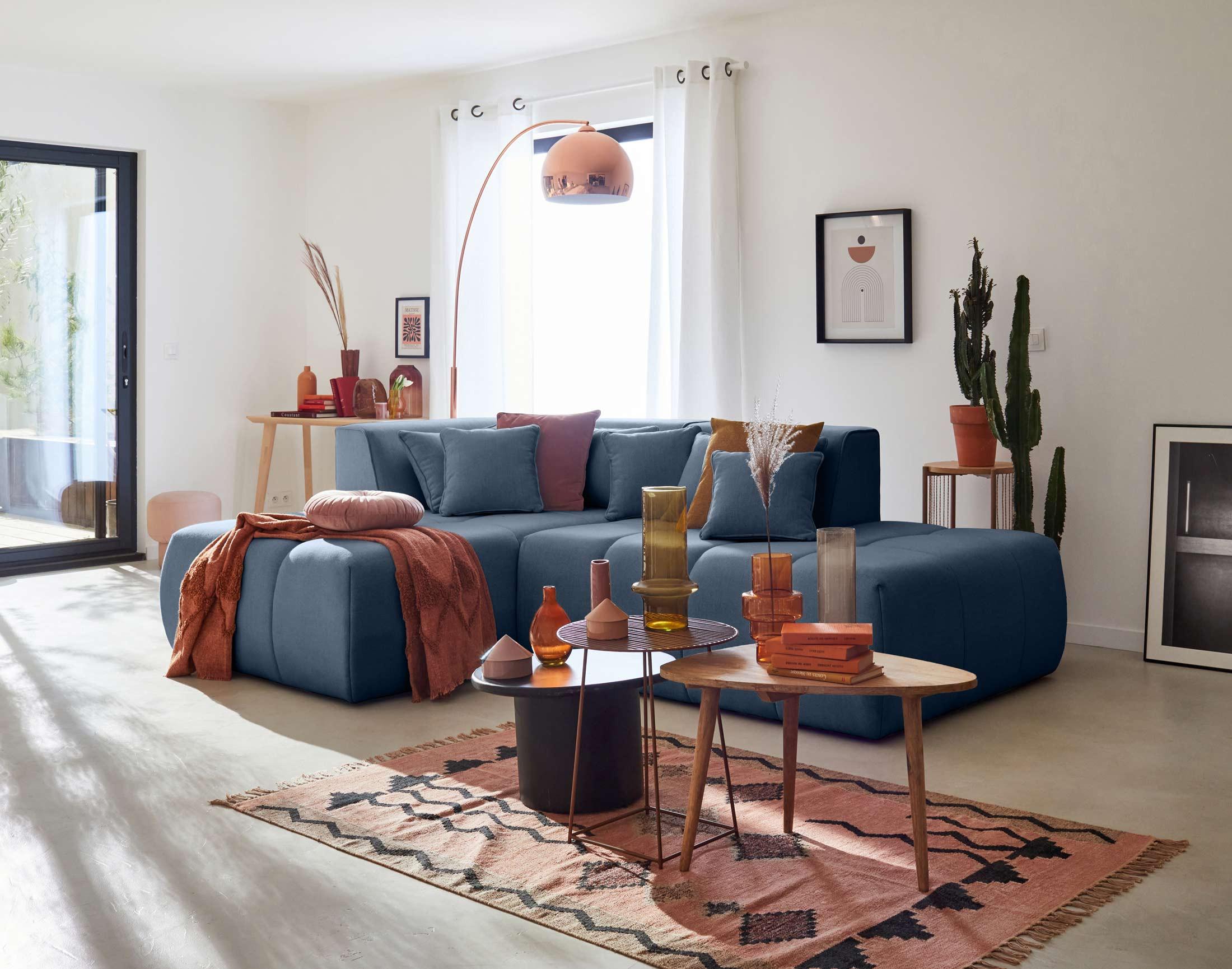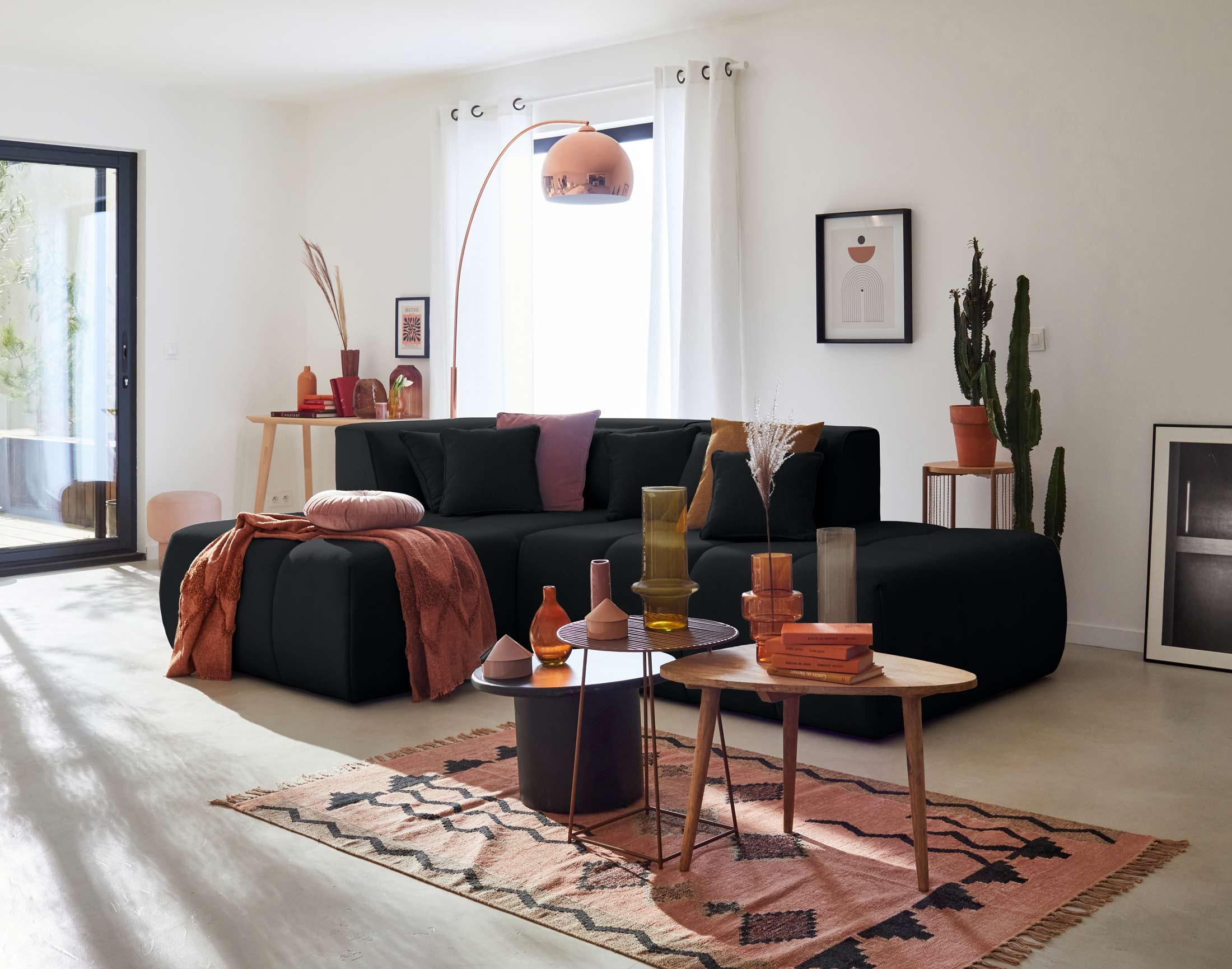 Disponible en plusieurs coloris, le canapé d'angle modulable Caracas s'annonce être l'élément central de votre salon.