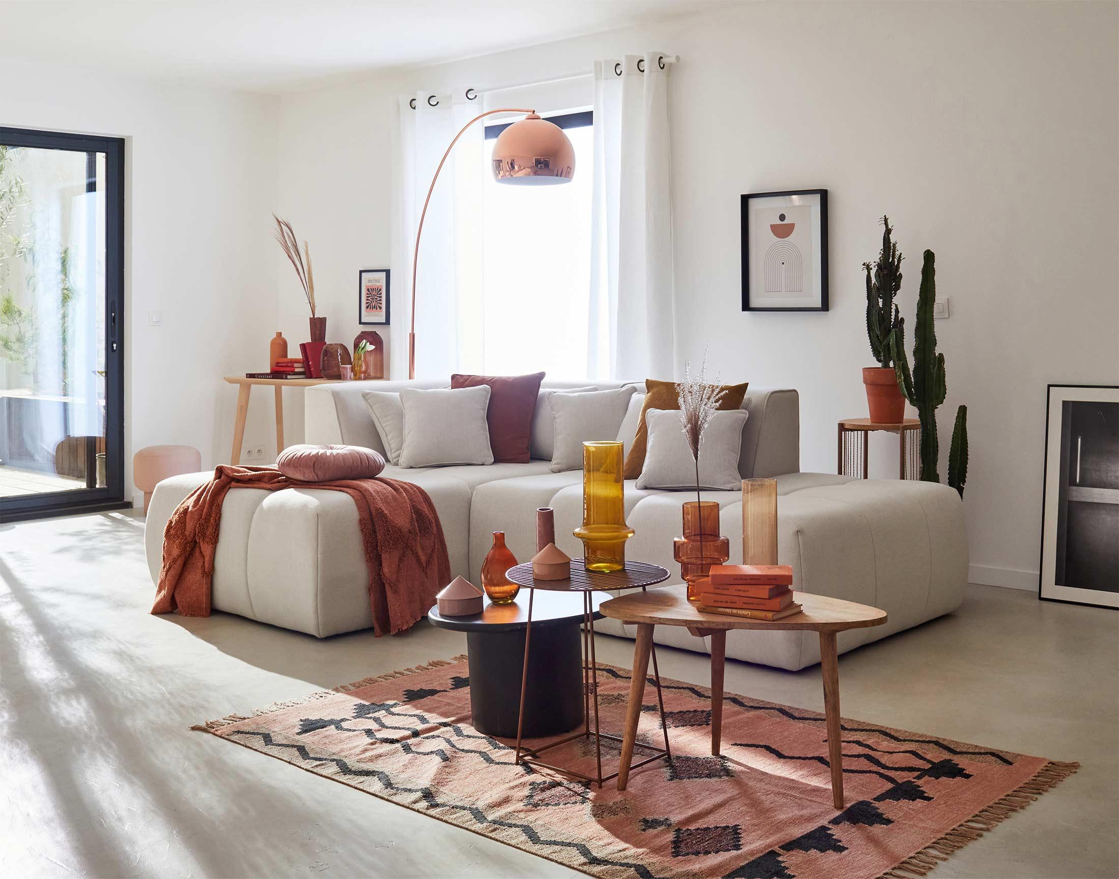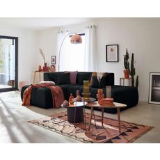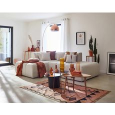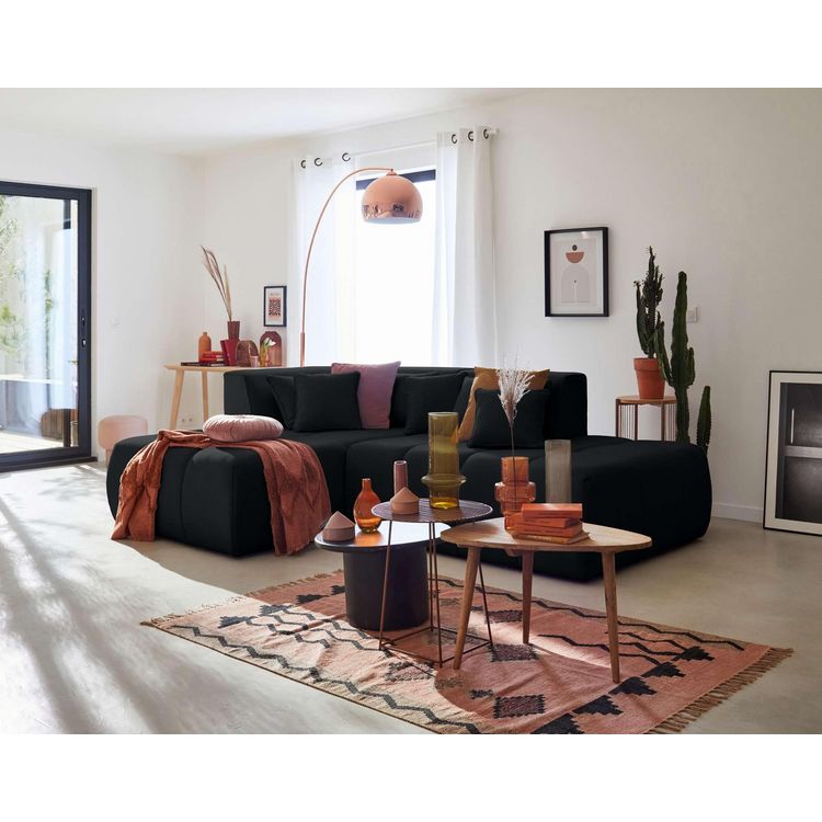 Découvrez le canapé d'angle modulable Caracas, le canapé idéal pour tous les amoureux de la décoration ! Personnalisez et agencez votre intérieur selon vos envies avec ce canapé modulable. Composé de deux modules, ce canapé peut accueillir jusqu'à 4 personnes. Vous allez également adorer son design bubble, son assise marquée et rebondie, ses nombreux coussins ainsi que son revêtement en tissu très doux au toucher.
