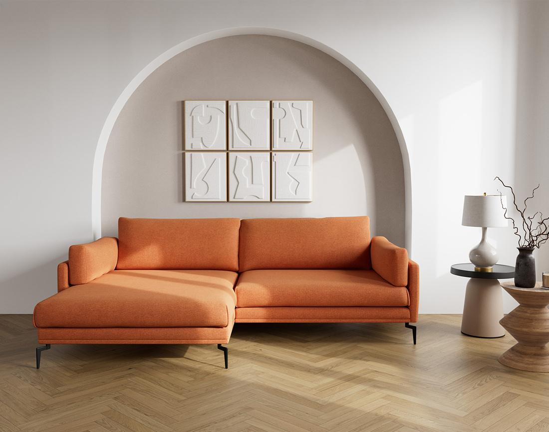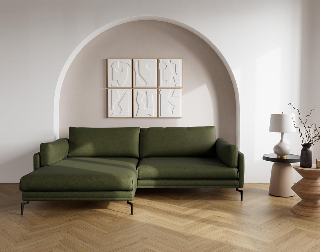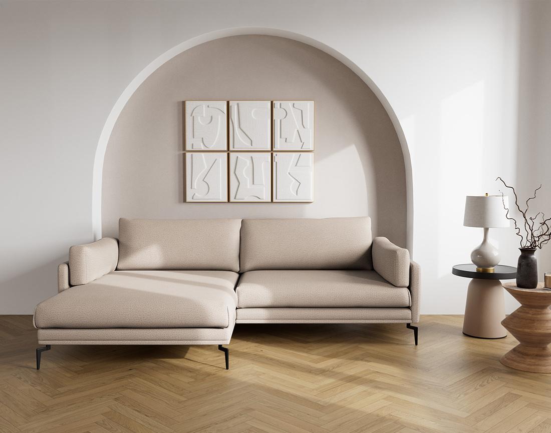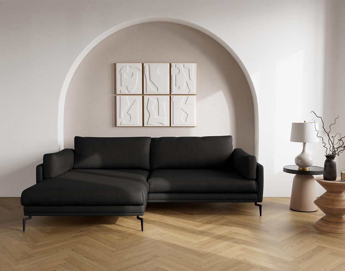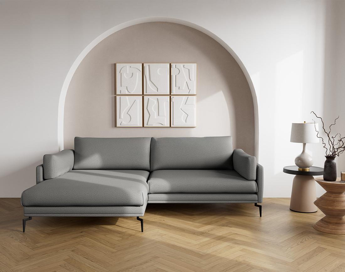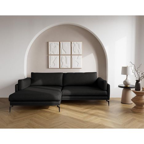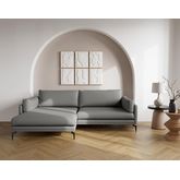 Le canapé d'angle gauche 4 places Carlos s'impose avec équilibre et style. Son design structuré et ses dimensions généreuses en font une pièce centrale idéale pour habiller un salon. Grâce à sa profondeur d'assise et à ses larges coussins moelleux, il offre une sensation immédiate de confort. Sa configuration en angle gauche est parfaite pour créer un espace fluide, tout en délimitant visuellement un coin cosy dans la pièce.