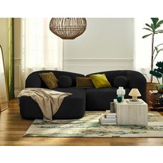 Le canapé d'angle gauche Charles est idéal pour structurer un espace de vie. Grâce à sa configuration en angle gauche, il permet de créer un coin cosy et accueillant dans votre salon tout en optimisant l'aménagement de la pièce. Son design organique et ses lignes arrondies adoucissent les volumes et donnent du caractère à votre intérieur. Sa grande profondeur d'assise vous invite à vous détendre complètement. C'est enfin le moment rêvé pour binge-watcher cette nouvelle série ou pour lire tous les tomes de votre roman préféré. En bref, ne plus sortir de ce canapé d'exception ! Les coussins décoratifs boules inclus ajoutent une touche originale. Et vous invitent encore plus au confort en maintenant votre nuque ou votre dos.