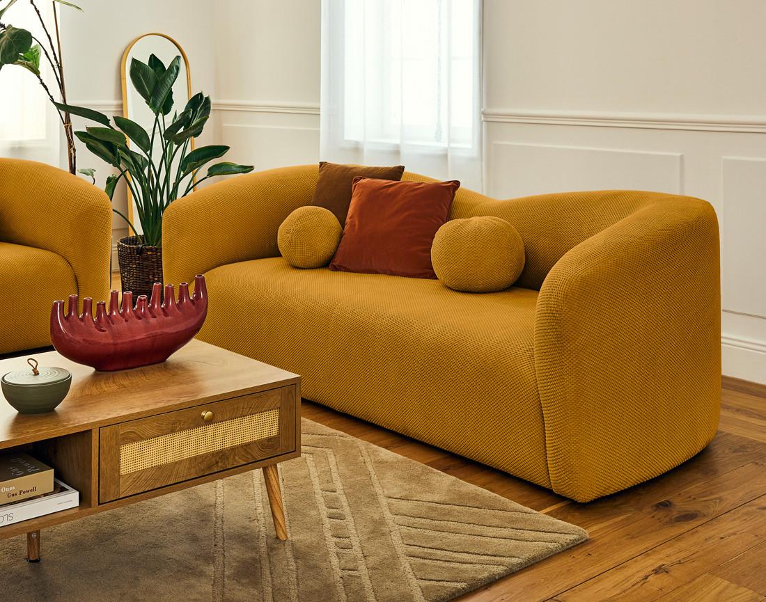 Place à la détente avec le canapé Charles. Avec ses lignes organiques et son design contemporain, il se distingue par une grande profondeur d'assise et un revêtement en velours texturé. Ce modèle est très doux et chaleureux. Il appelle à la détente avec une envie folle de s'y lover durant des heures. Pour un intérieur altique ou plus moderne, son design épuré lui confère le rôle principal de votre espace. Avec ses dimensions généreuses de 208 cm de large, il est confortable pour trois personnes, tout en restant compact pour s'adapter à des salons de taille moyenne. Fabriqué en Europe, ce canapé est le fruit d'un savoir-faire de qualité. Il reflète l'engagement de la marque Lisa Design à proposer des meubles durables, esthétiques et fonctionnels. Disponible en six coloris – beige, jaune, terracotta, bleu marine, noir et gris – il s'adapte à toutes les palettes de décoration intérieure.